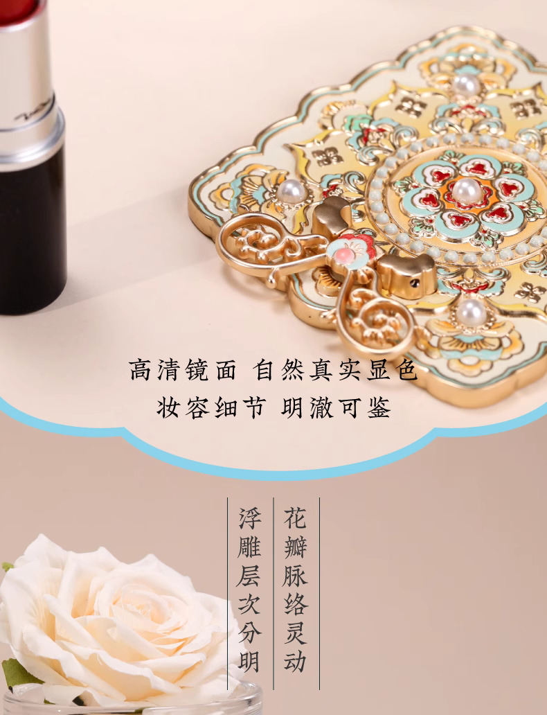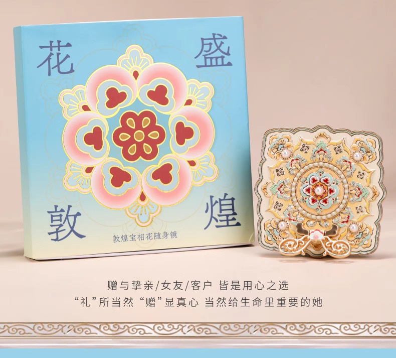敦煌研究院花盛宝相花镜子化妆镜送女友生日礼物随身镜七夕礼物