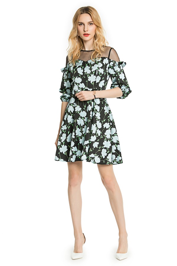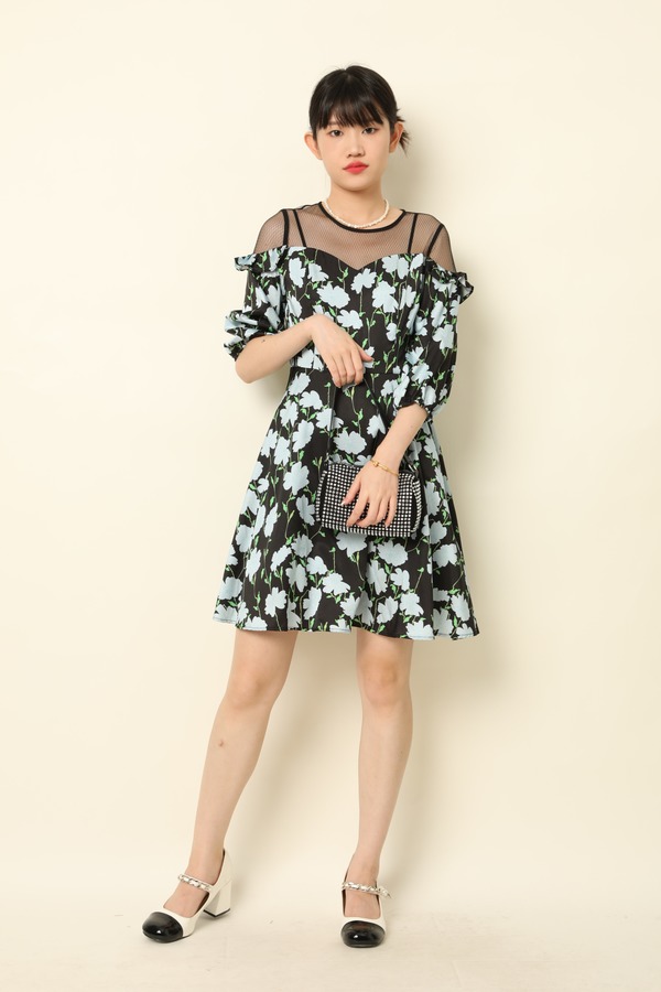 ZVY 黑色印花连衣裙 3613