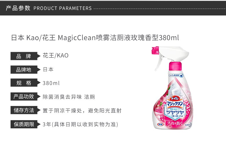 花王马桶清洁喷雾剂 玫瑰香型 380ML
