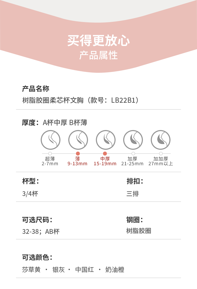 都市丽人内衣自然舒适A:中厚B:薄蕾丝三排扣树脂胶圈3/4杯常规文胸LB22B1