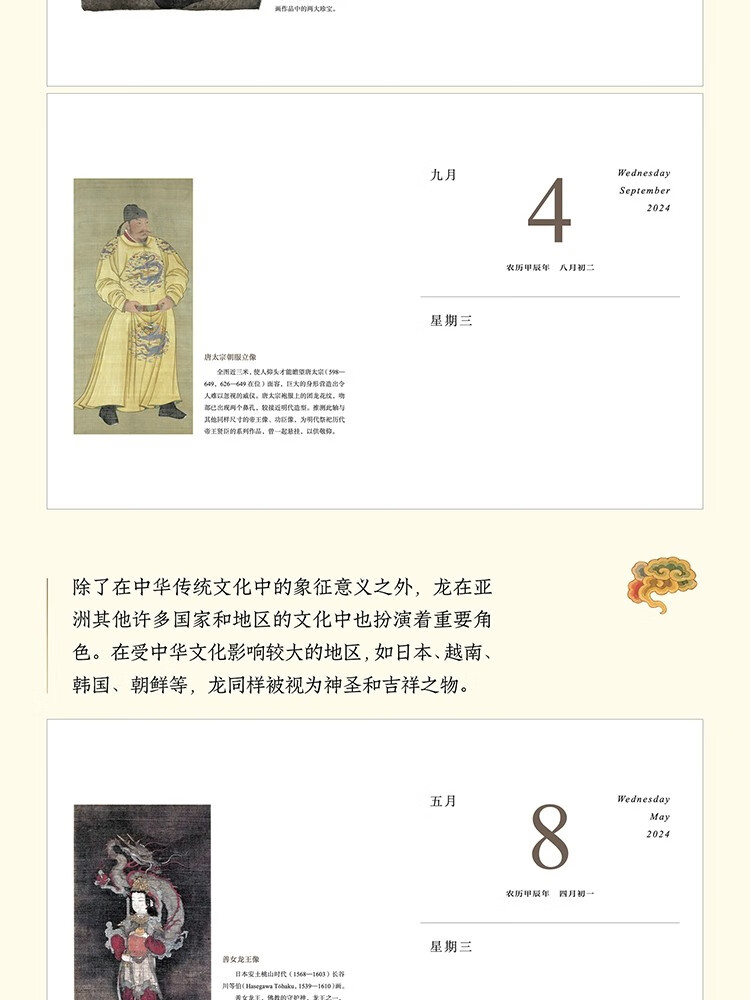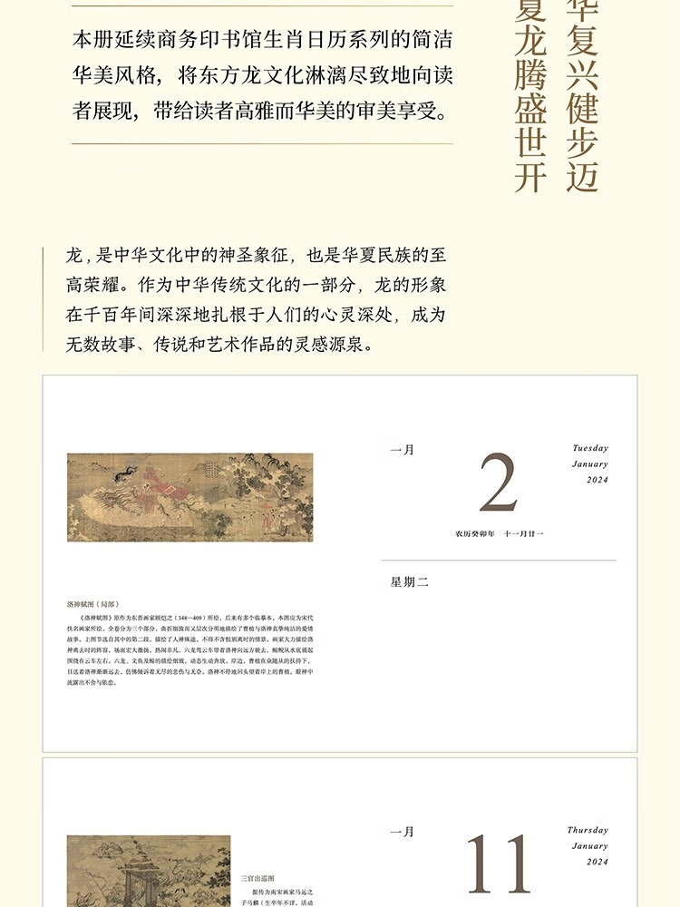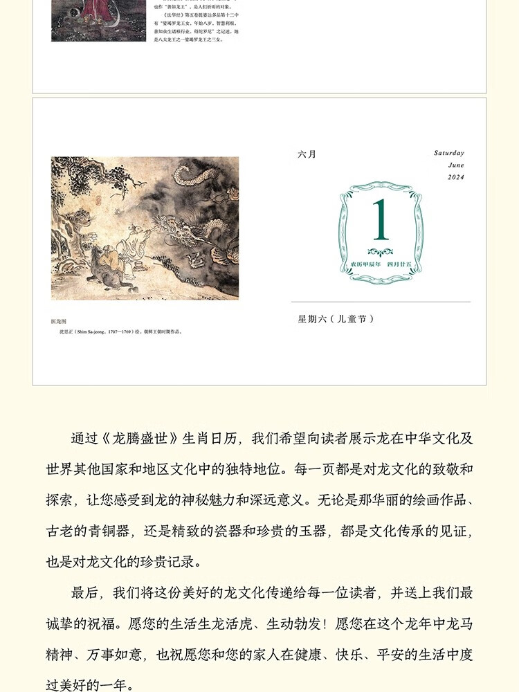 中华龙文化源远流长,多元并包,龙的形象经历了一个历史悠久且丰富多彩的演变过程。最早的龙形象可以追溯到中国原始社会,其形态可能与当时人们对神秘自然力量的崇拜有关。最初,龙常被描绘成蛇形或有翅膀的生物,是一种象征着水、雨和丰收的精神符号。随着社会的发展,龙的形象逐渐与权力、统治和君主的合法性相联系。龙被视为皇权的象征,龙的崇拜在中国封建社会达到高峰。龙在艺术中的表现逐渐丰富,成为壁画、绘画和雕塑等艺术创作重要的主题。本书以龙为“主角”,精选与龙相关的经典画作、织品、玉器、漆器和瓷器等,每一页都是对龙文化的致敬和探索,让读者全方位感受龙的神秘魅力和深远意义。