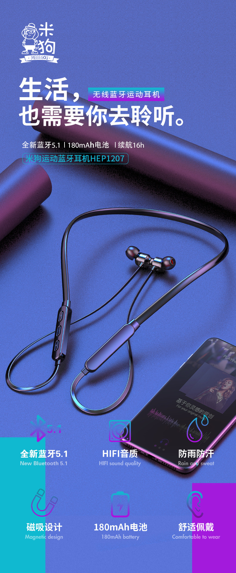 米狗运动蓝牙耳机MEP1207
