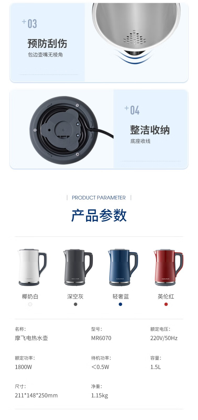 【小家电】摩飞 电热水壶 MR6070HF
