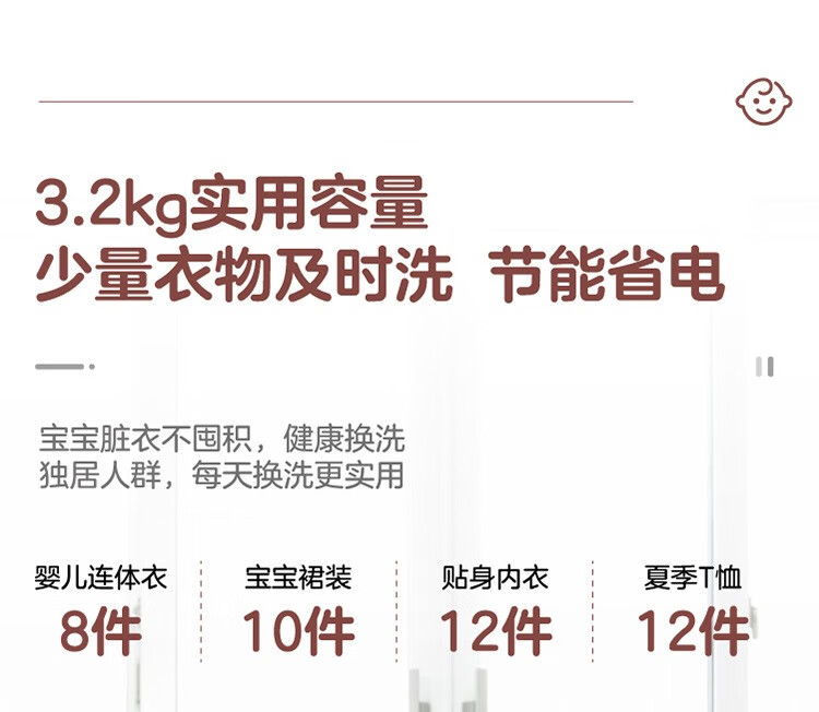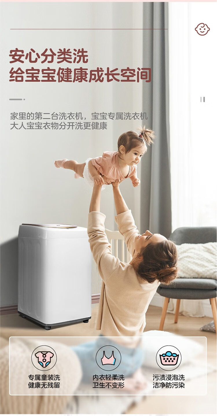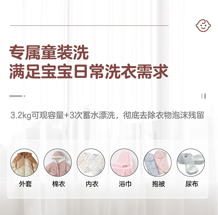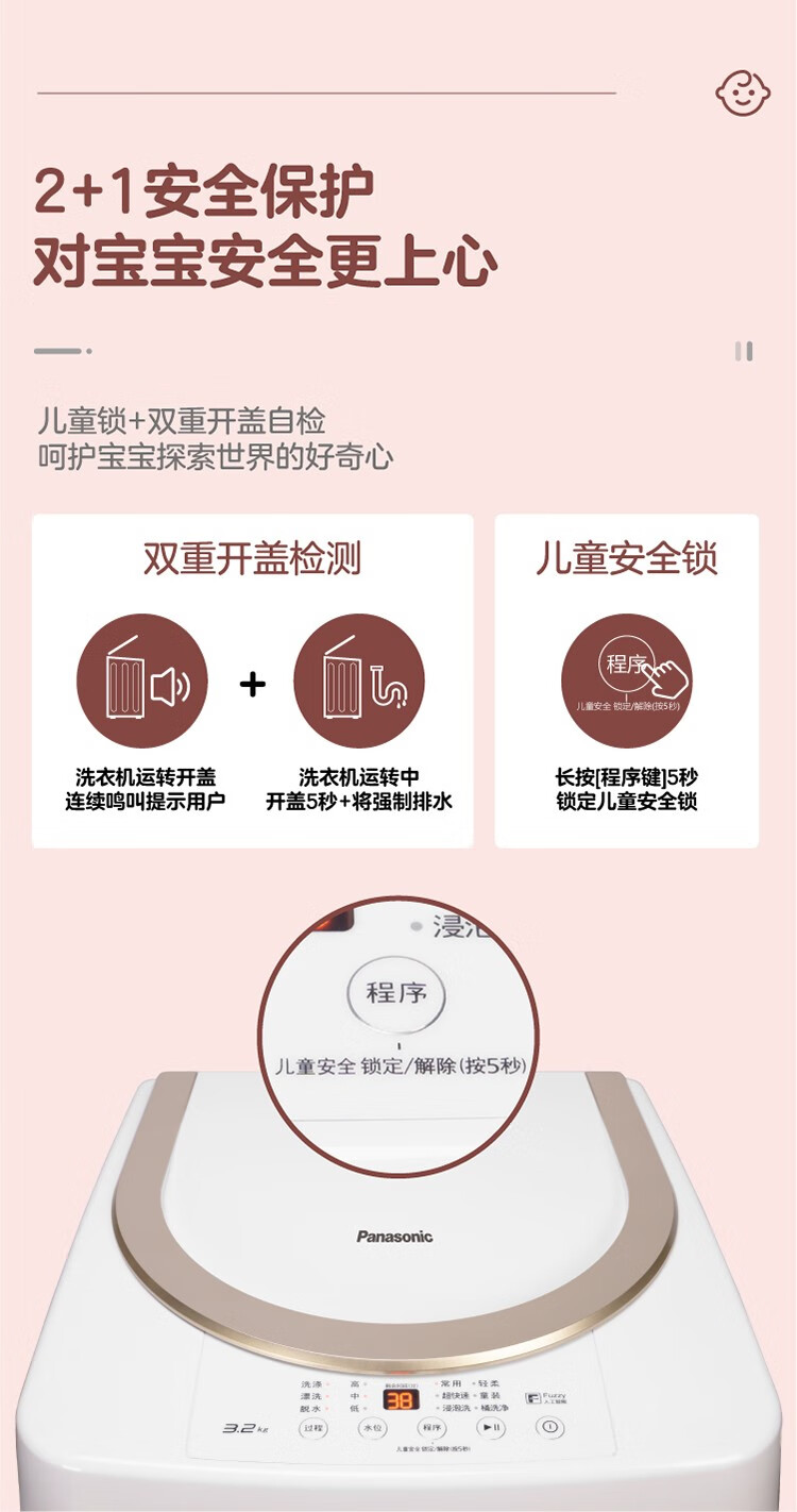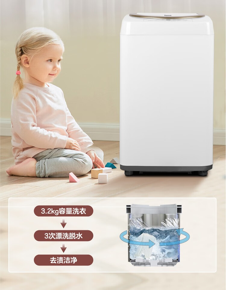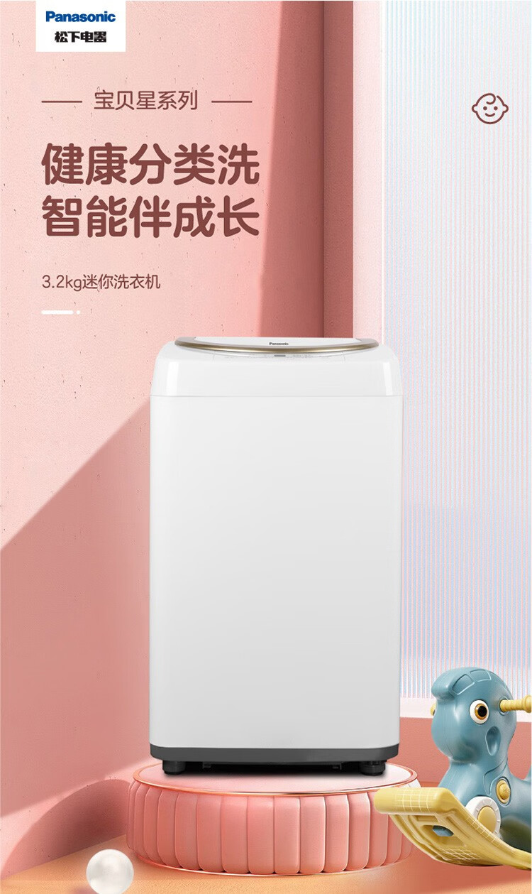 松下(Panasonic)母婴儿童宝宝迷你波轮洗衣机洗衣机3.2kg内衣内裤袜子 XQB32-P310