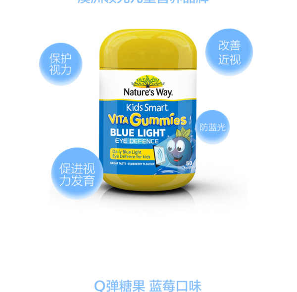 【澳洲仓】Vmores 乳铁蛋白60g+Nature's Way 蓝光护眼软糖50粒*3(012606)