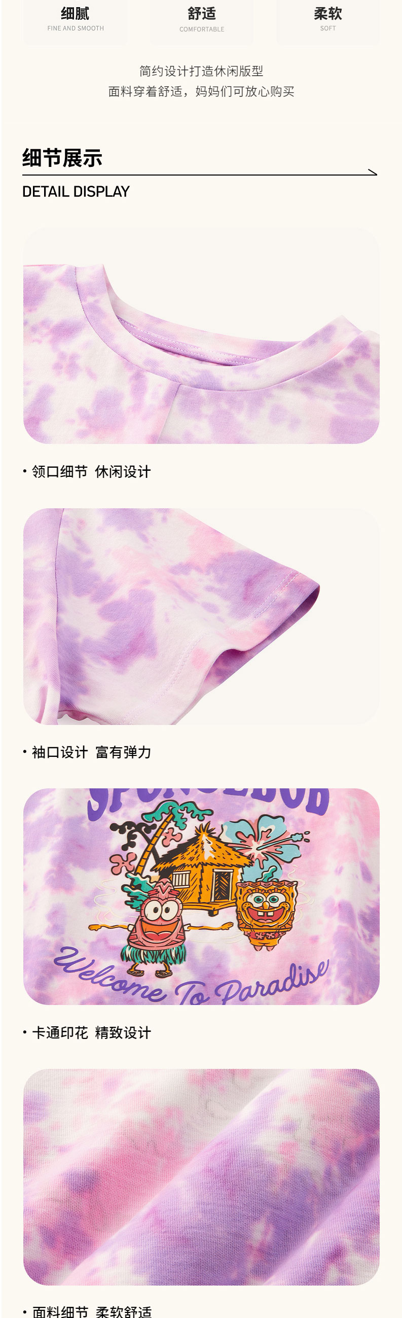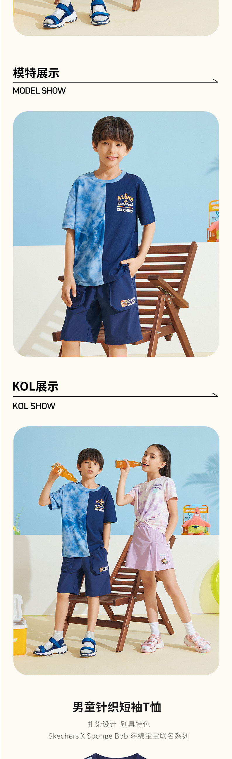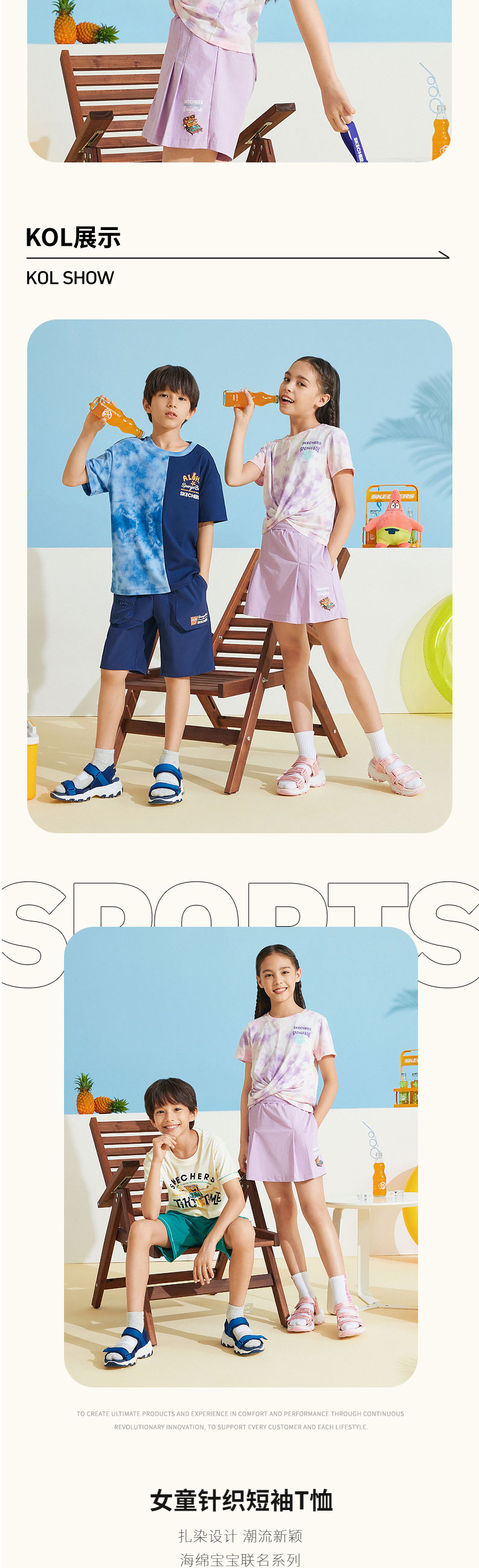 小斯凯奇【海绵宝宝联名】儿童短袖夏新款纯棉女童扎染T恤L222G057