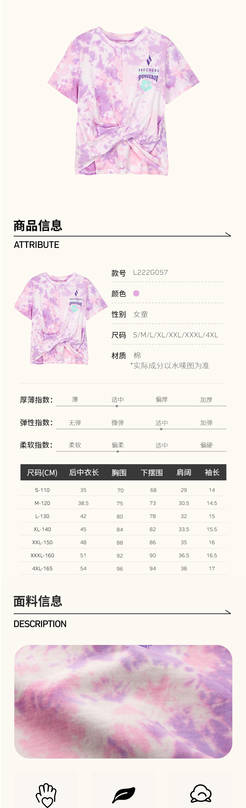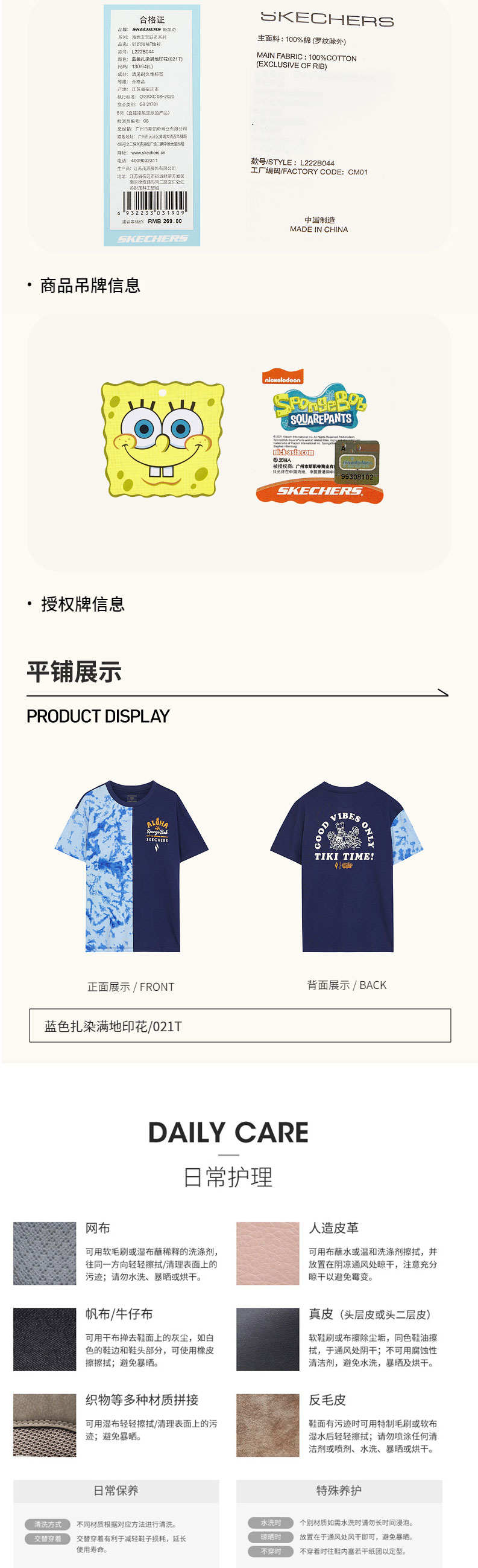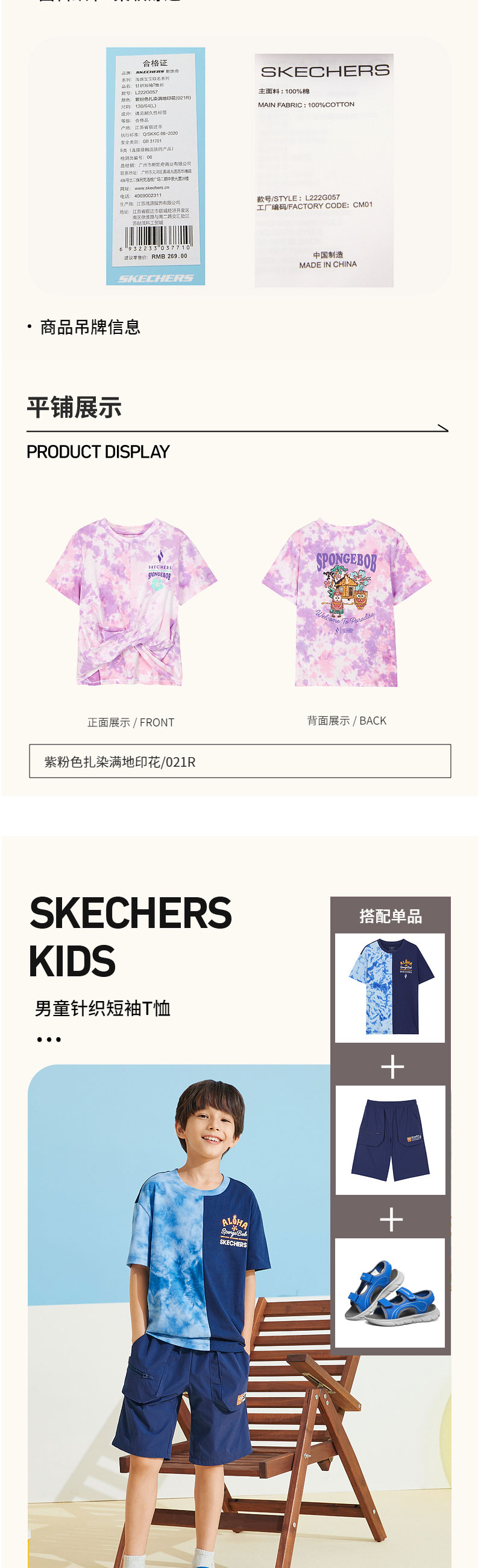 小斯凯奇【海绵宝宝联名】儿童短袖夏新款纯棉女童扎染T恤L222G057