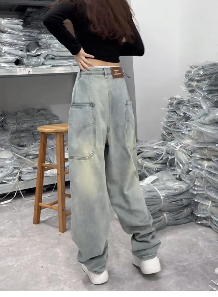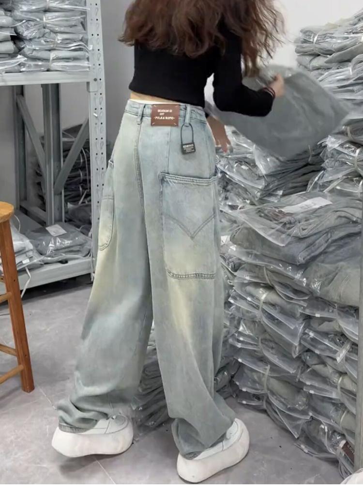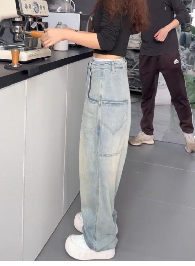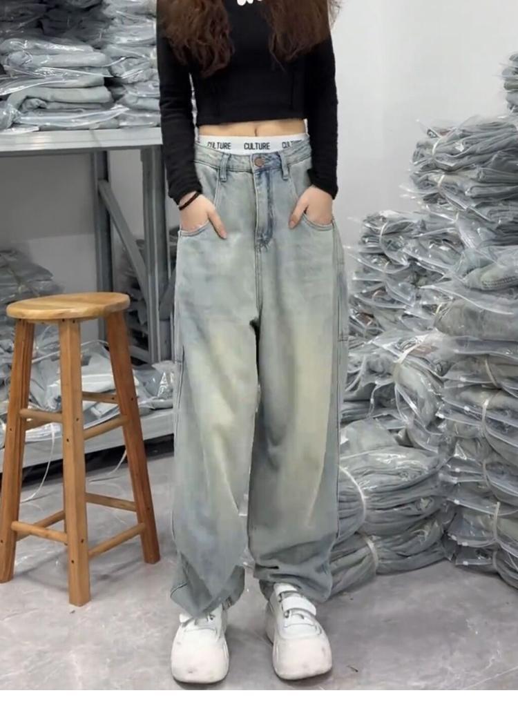 牛仔裤女士秋季裤子小个子蓝色显瘦高腰时尚宽松大码显瘦阔腿裤子