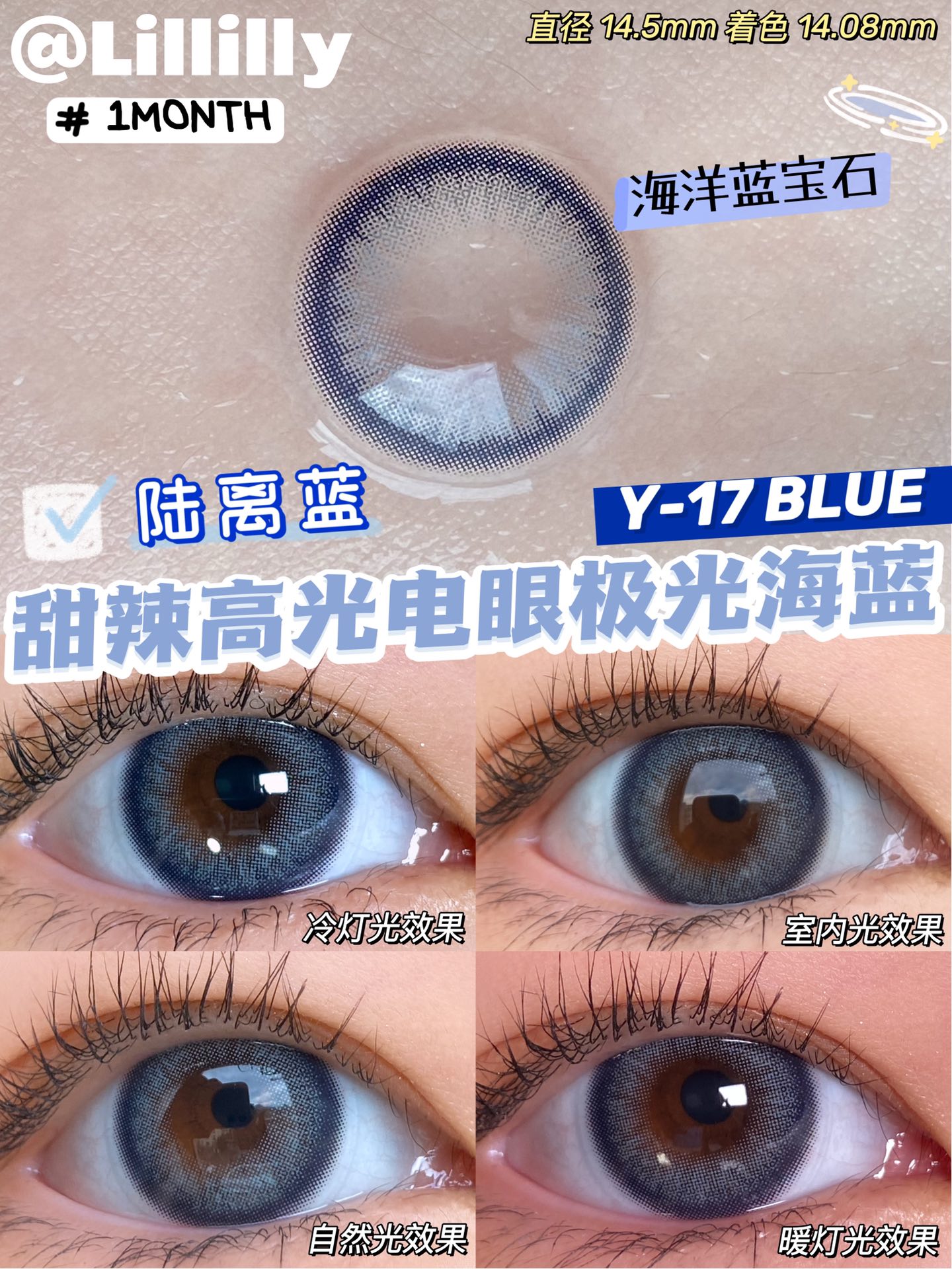 Lillilly Y-17陆离蓝 月抛 2片 14.5mm 着色14.0mm 基弧8.6 含水42% 新锐国货