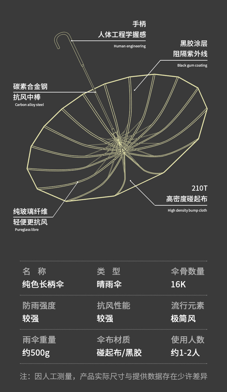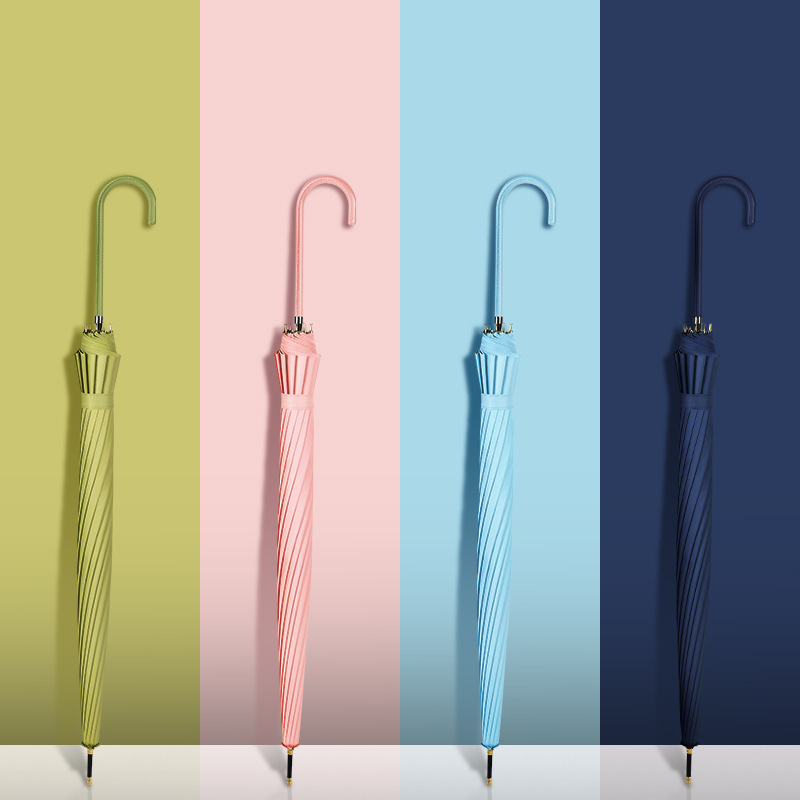 「16骨加固!七款可选」简约晴雨两用直杆雨伞 小清新皮柄16骨黑胶伞女士遮阳伞居家日用