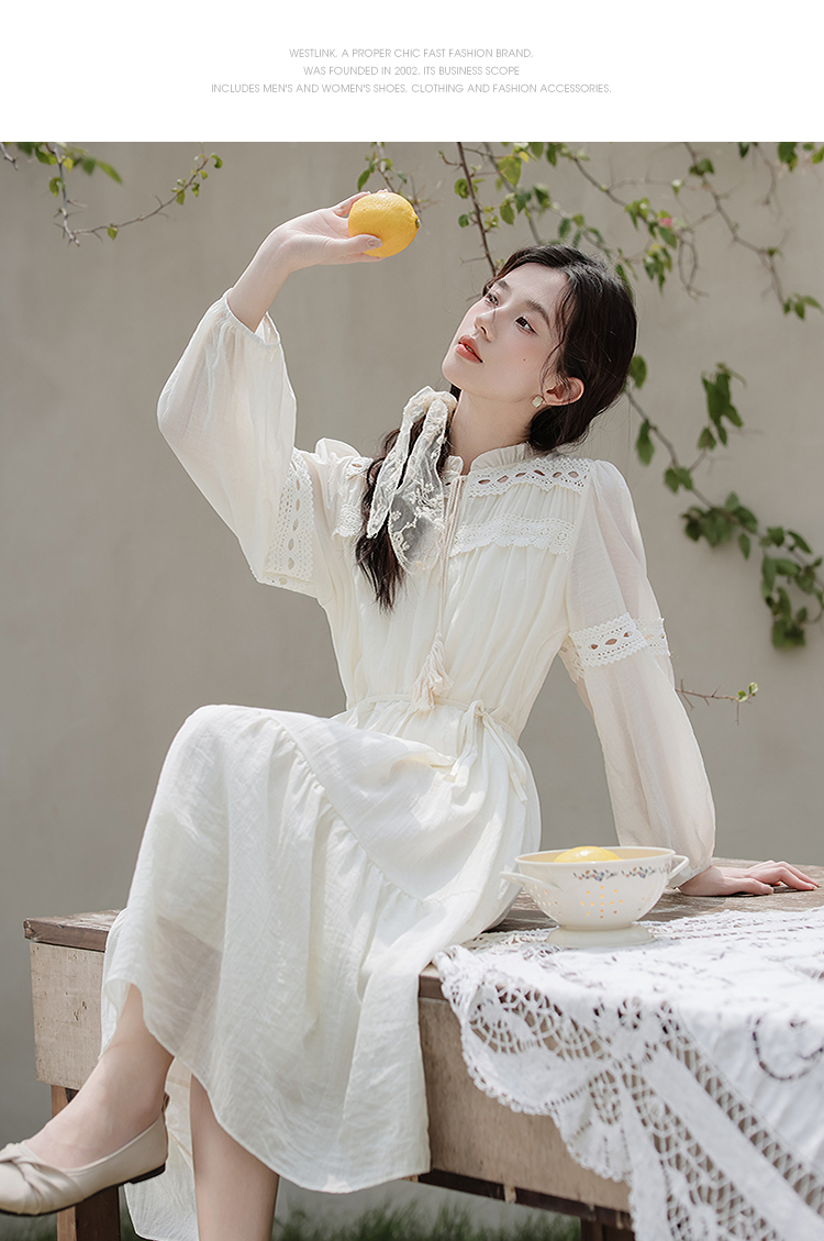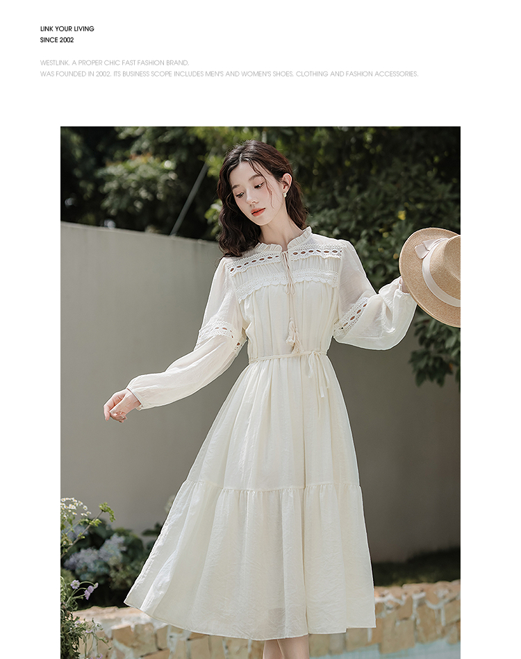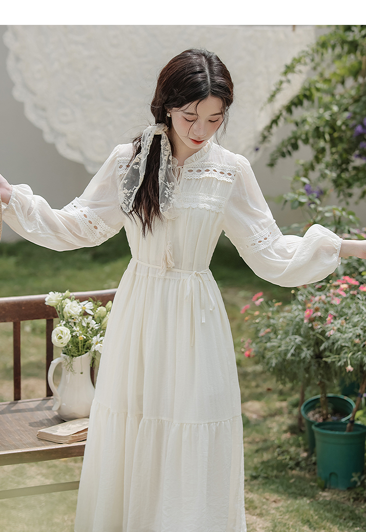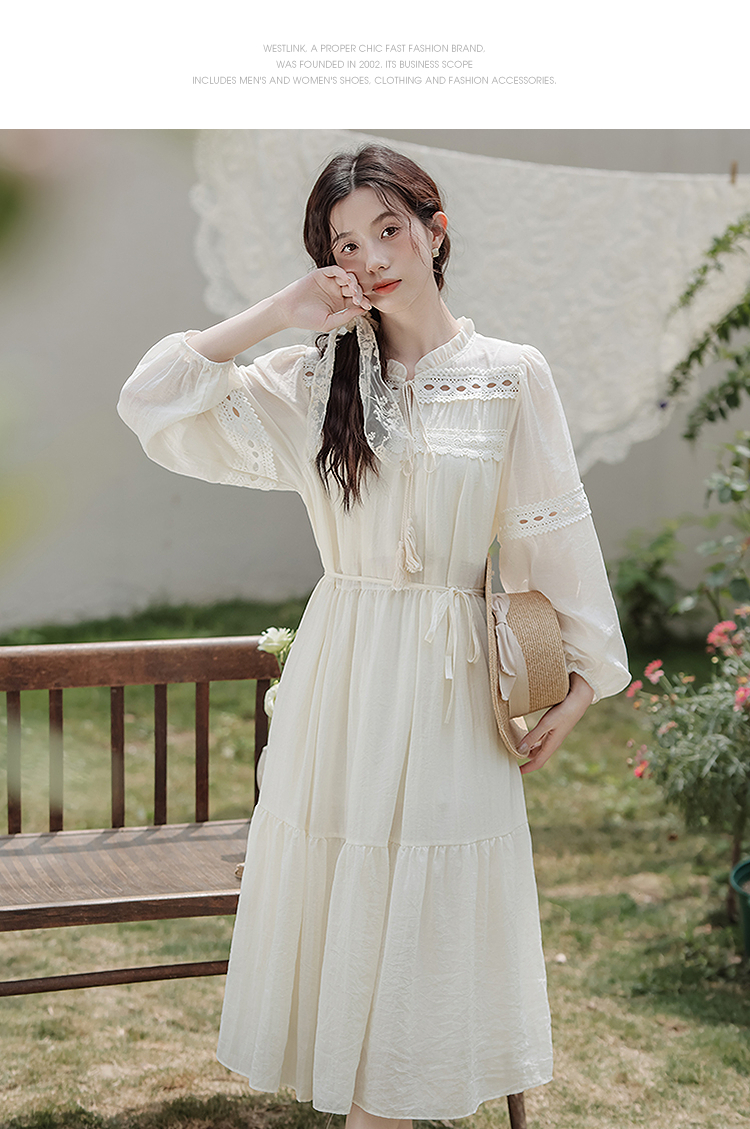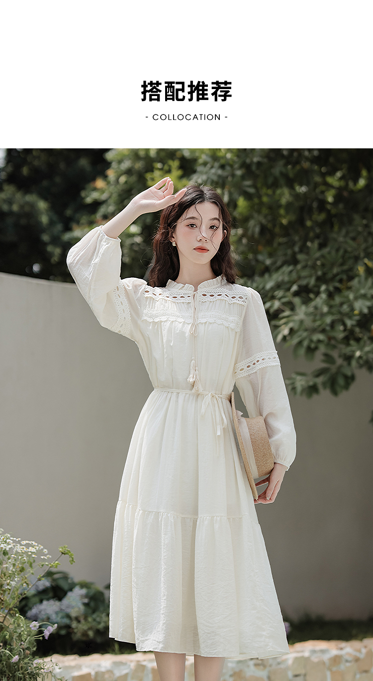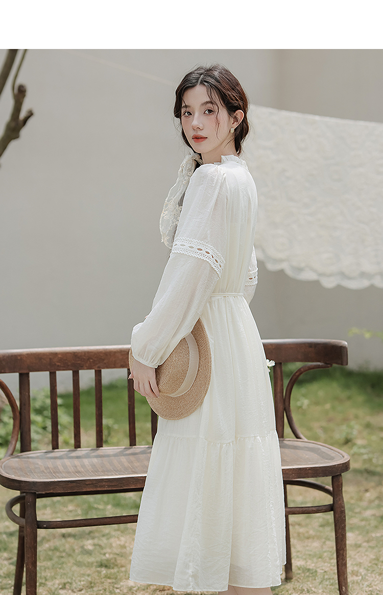 西遇民族风白色长袖连衣裙女2026年春季新款收腰波西米亚大摆长裙SS060231