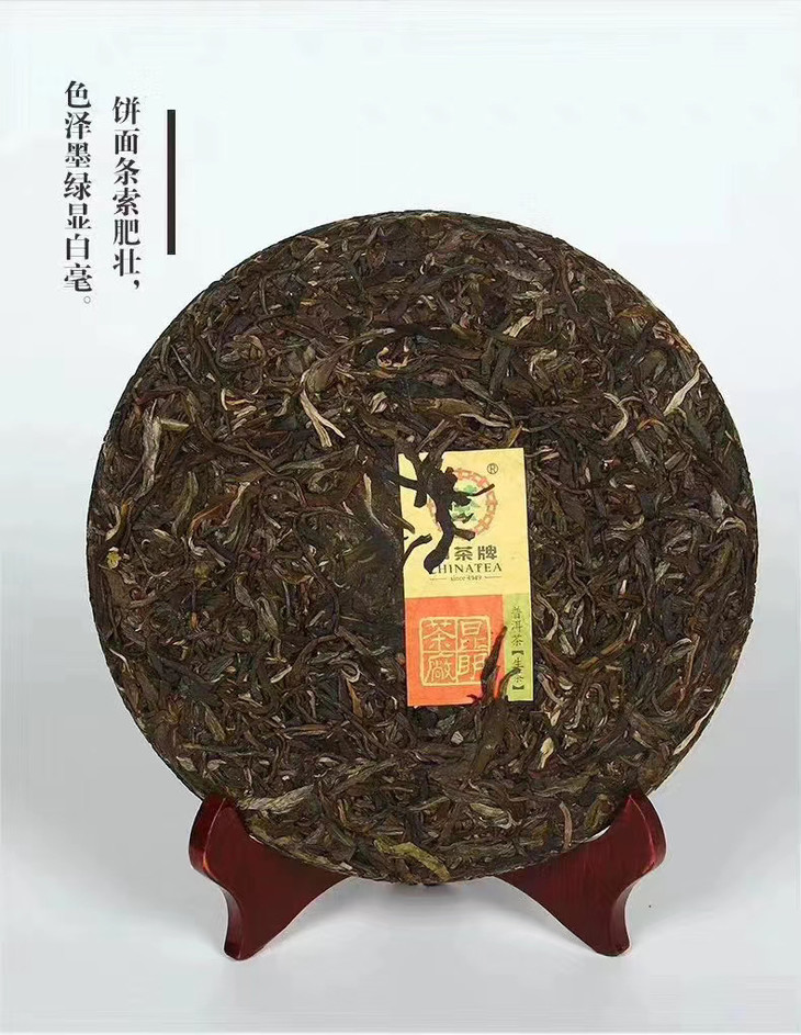 每饼净重357g,饼形圆整大气,松紧适度,厚薄均匀,饼面条索肥壮,色泽墨绿显白毫;汤色黄绿明亮,香气清香高扬,滋味醇厚,收敛性强,回味甘甜,叶底黄绿、柔软有弹性。是您聚友品饮、收藏的上佳选择。