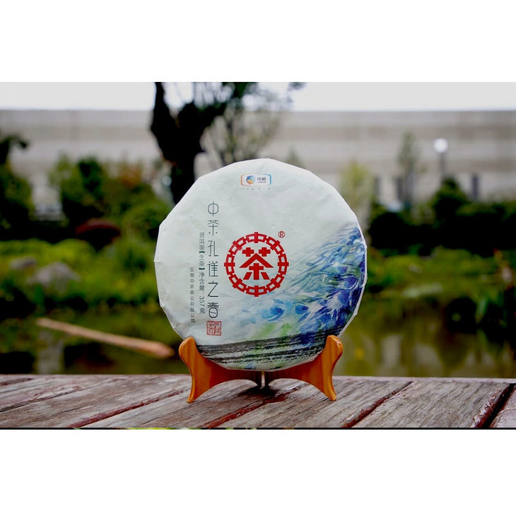 中茶孔雀之春普洱茶(生茶)精选云南省西双版纳州高山茶区优质茶菁为原料,传统晒青工艺加工,后经蒸压成型。