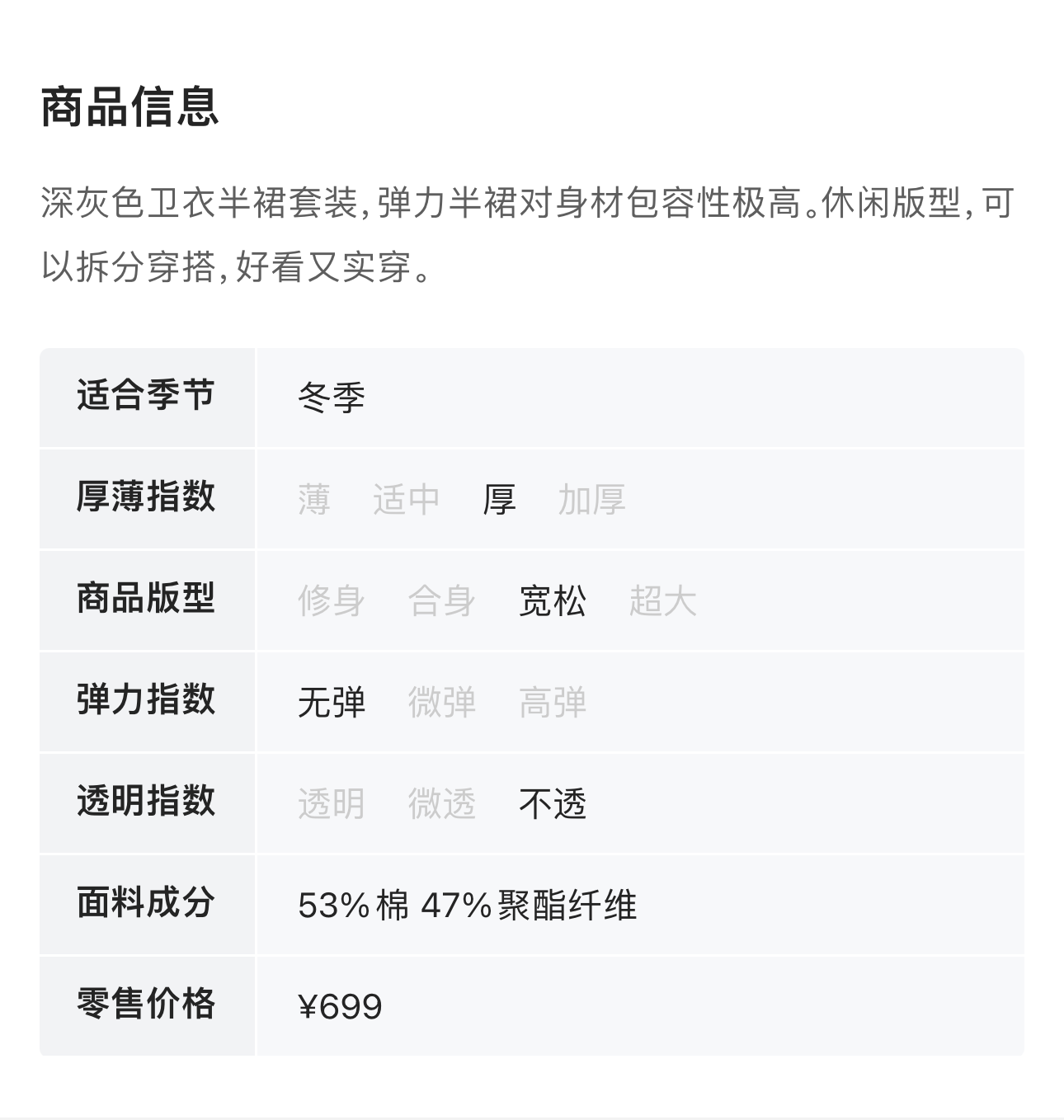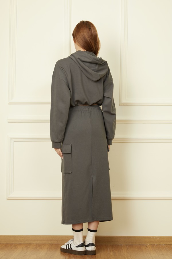 WHO KNOWS 深灰色休闲卫衣半裙套装 19278