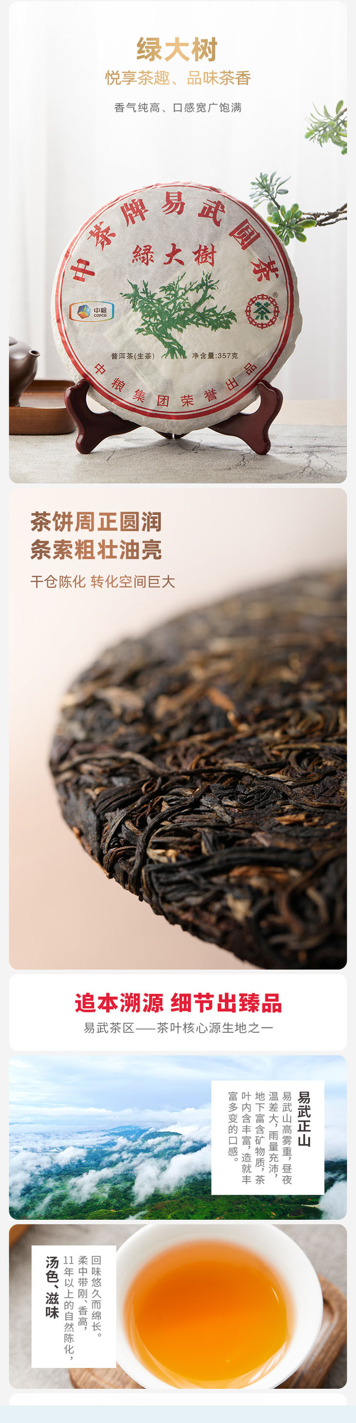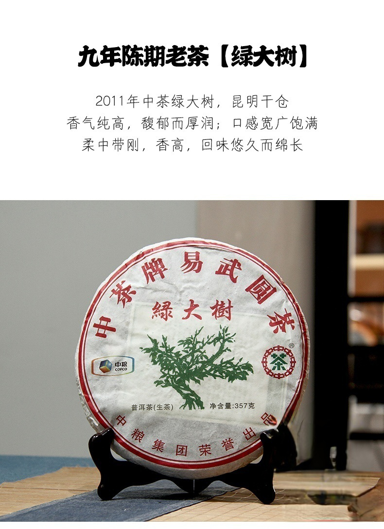 中粮-中茶 2011年(生茶)绿大树易武圆茶普洱生茶茶饼 357克 /云南干仓直发