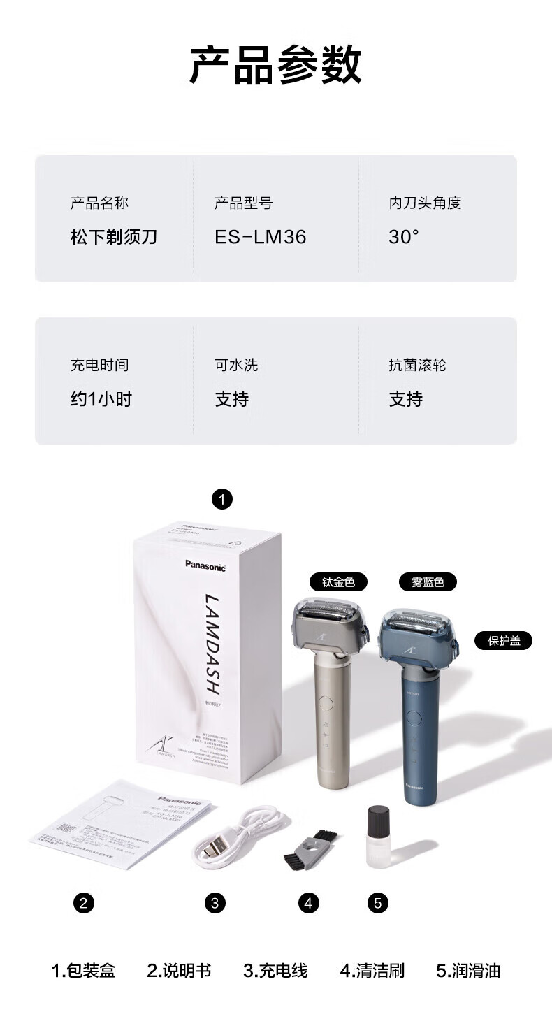 松下 全新小锤子3.0剃须刀电动往复式顺滑滚轮男士刮胡刀Type-c ES-JLM36