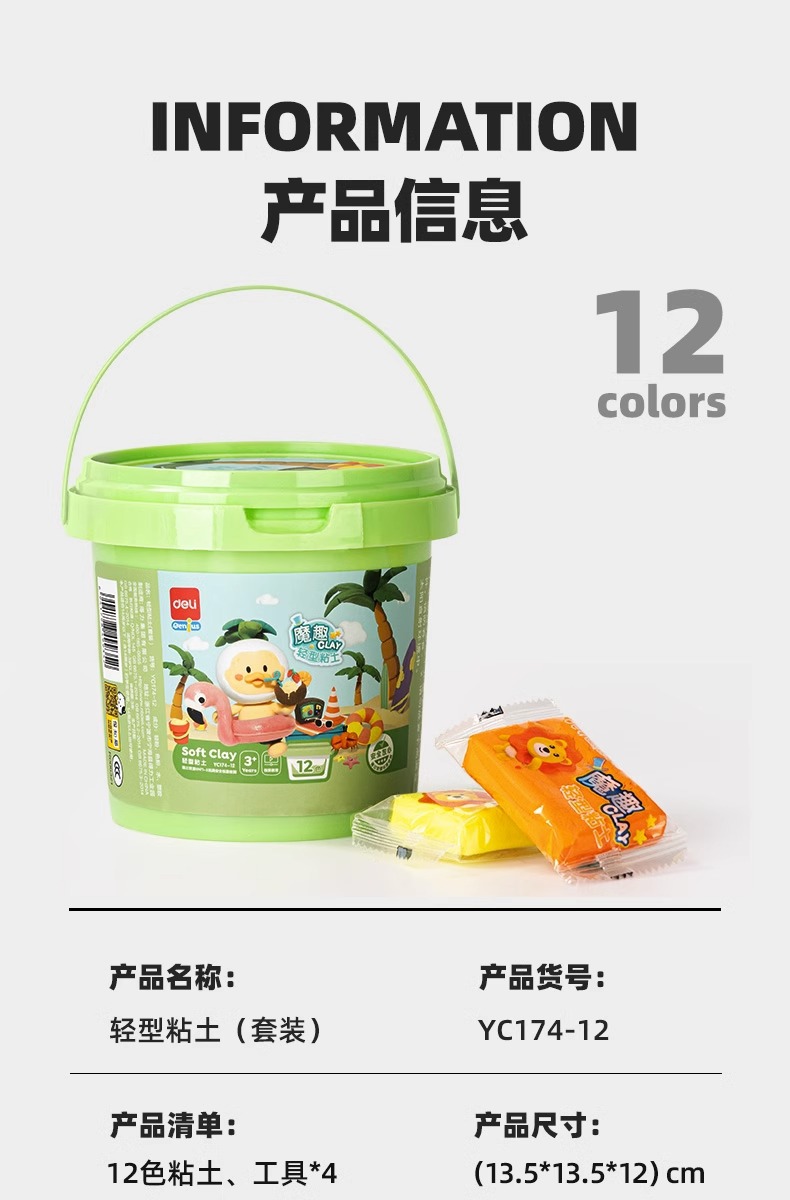「升级桶装!多彩萌趣」得力轻粘土儿童安全无毒彩泥12色24色36色幼儿园橡皮泥黏土玩具