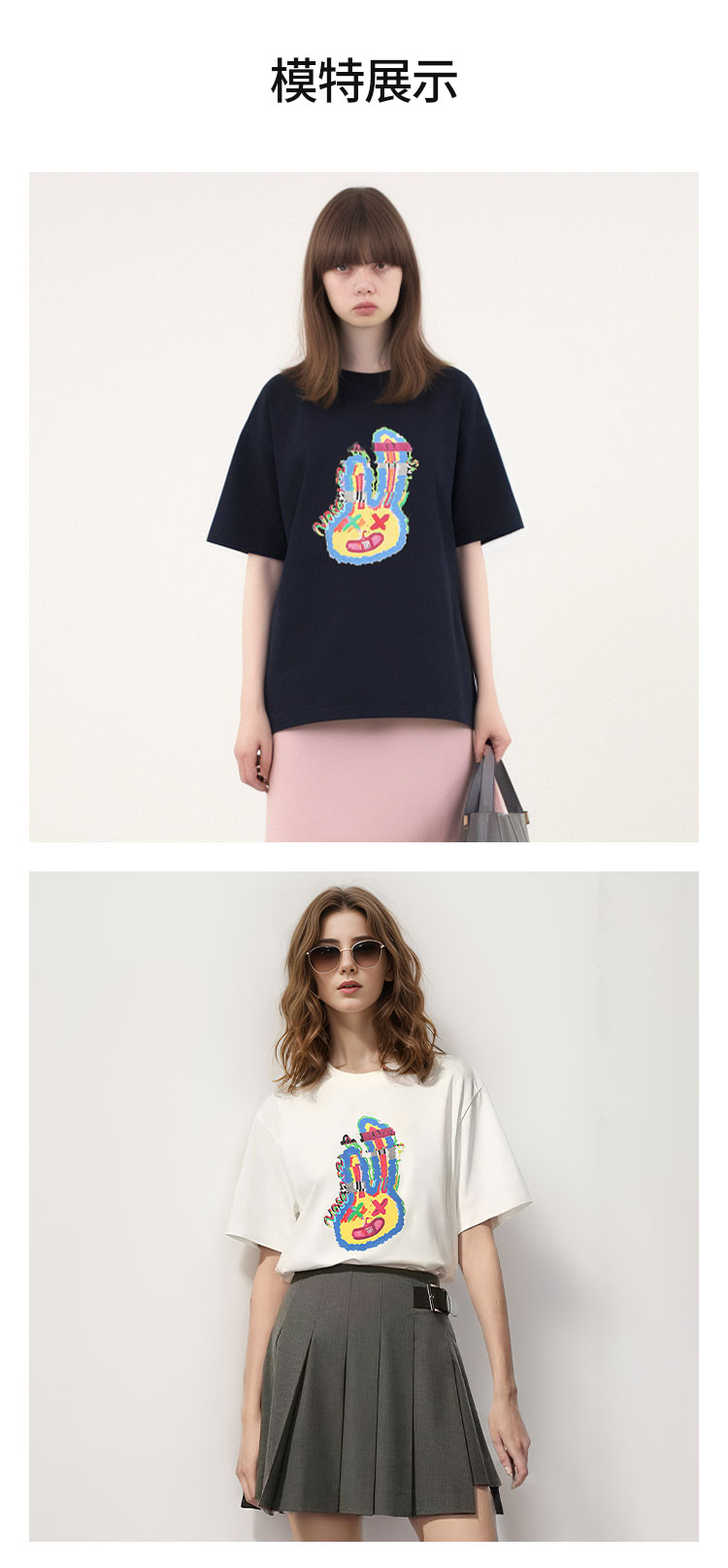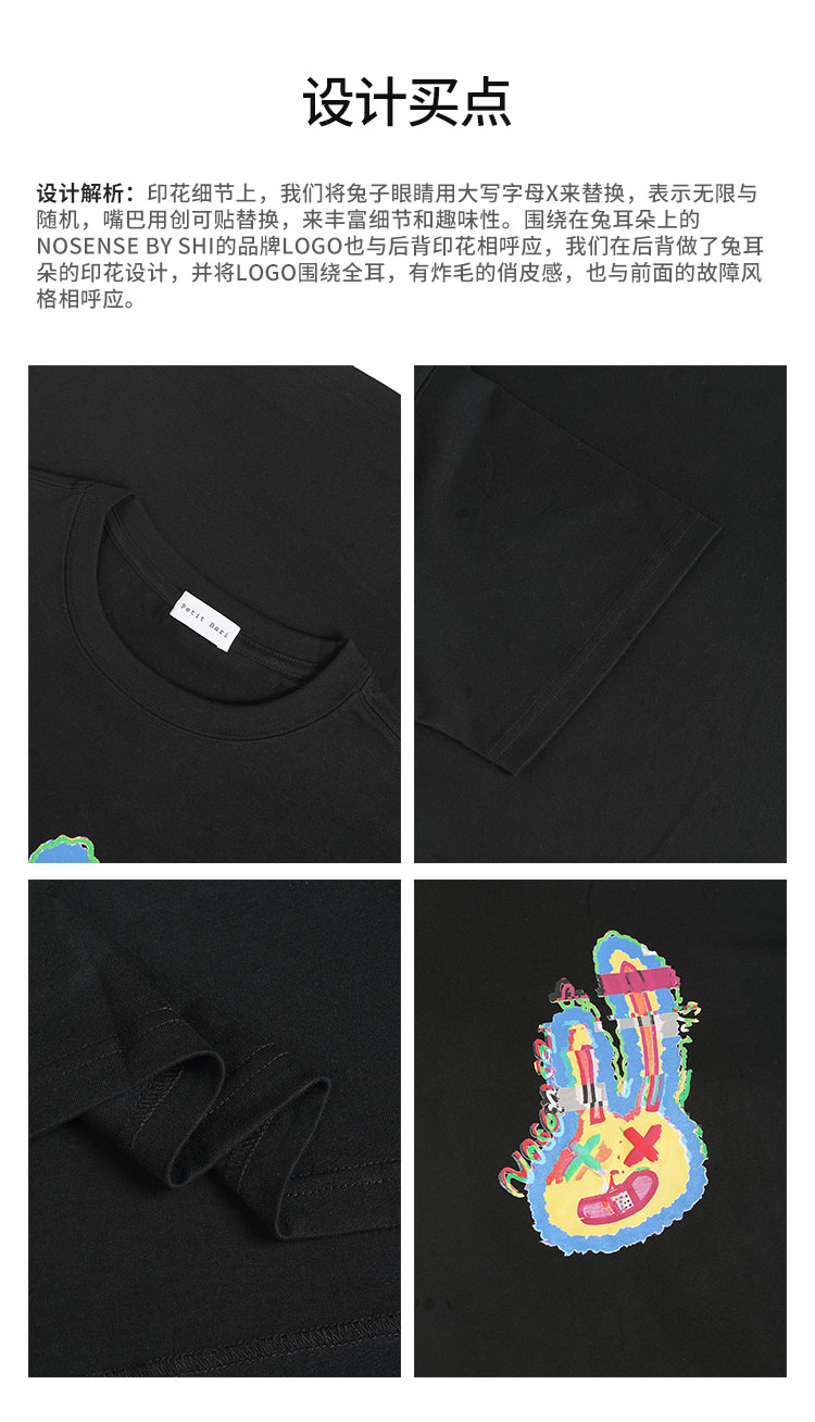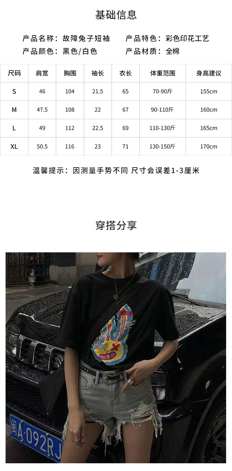 【2件9折】【Petit Bari】(多色)设计师联名款故障兔子短袖T恤女士潮牌短袖
