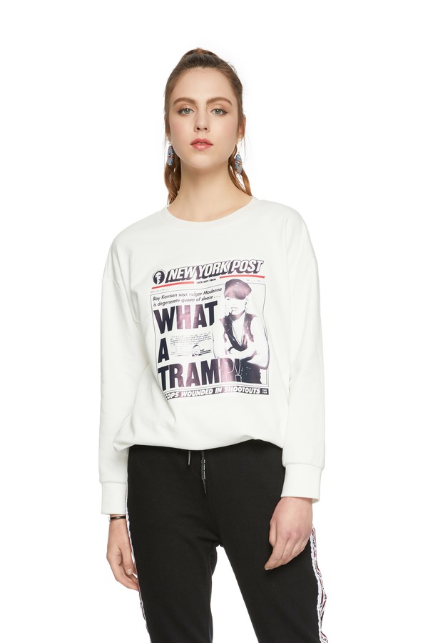 SUMMER & SAGE 海报印花白色卫衣 6256
