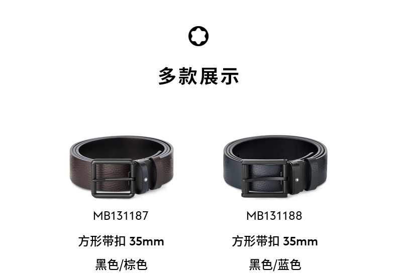 万宝龙 方形带扣黑色蓝色腰带 35毫米 MB131188-F .