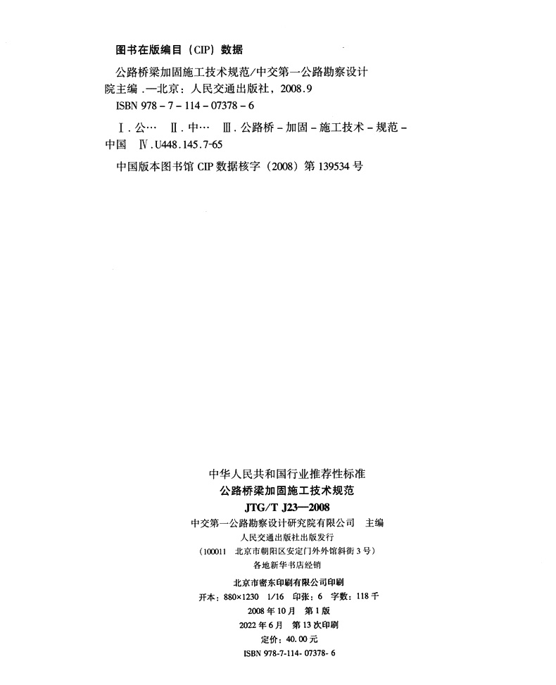 书名:公路桥梁加固施工技术规范(JTG/T J23-2008)