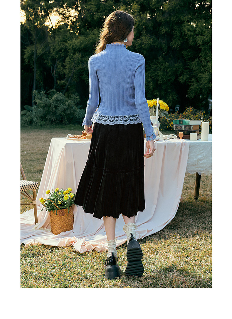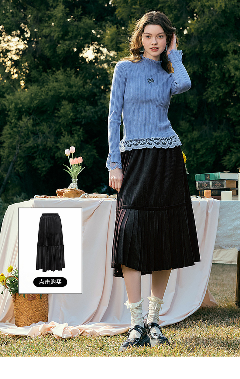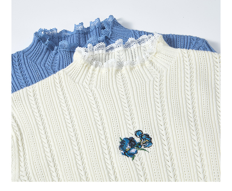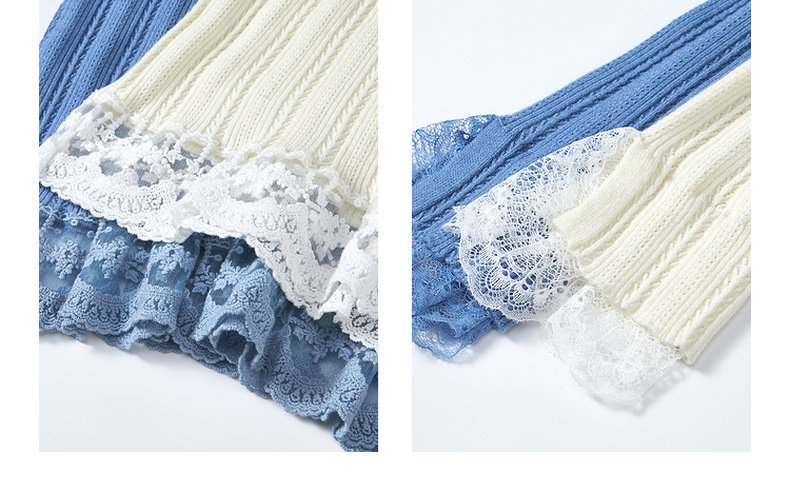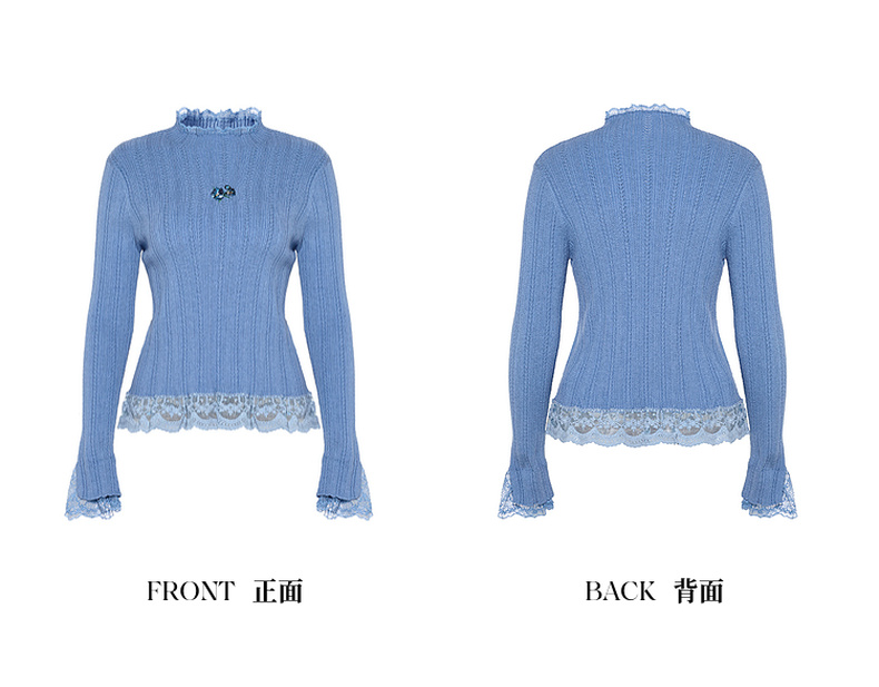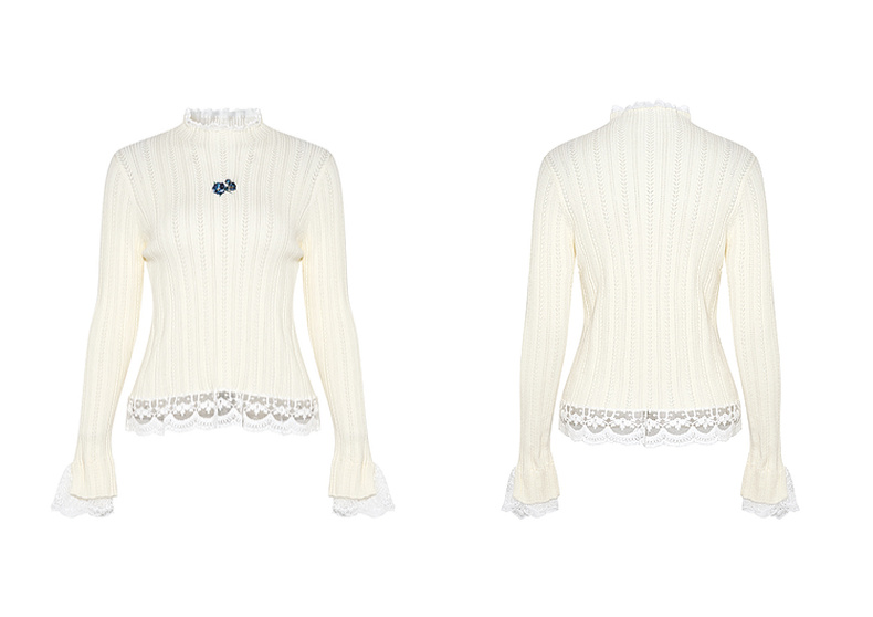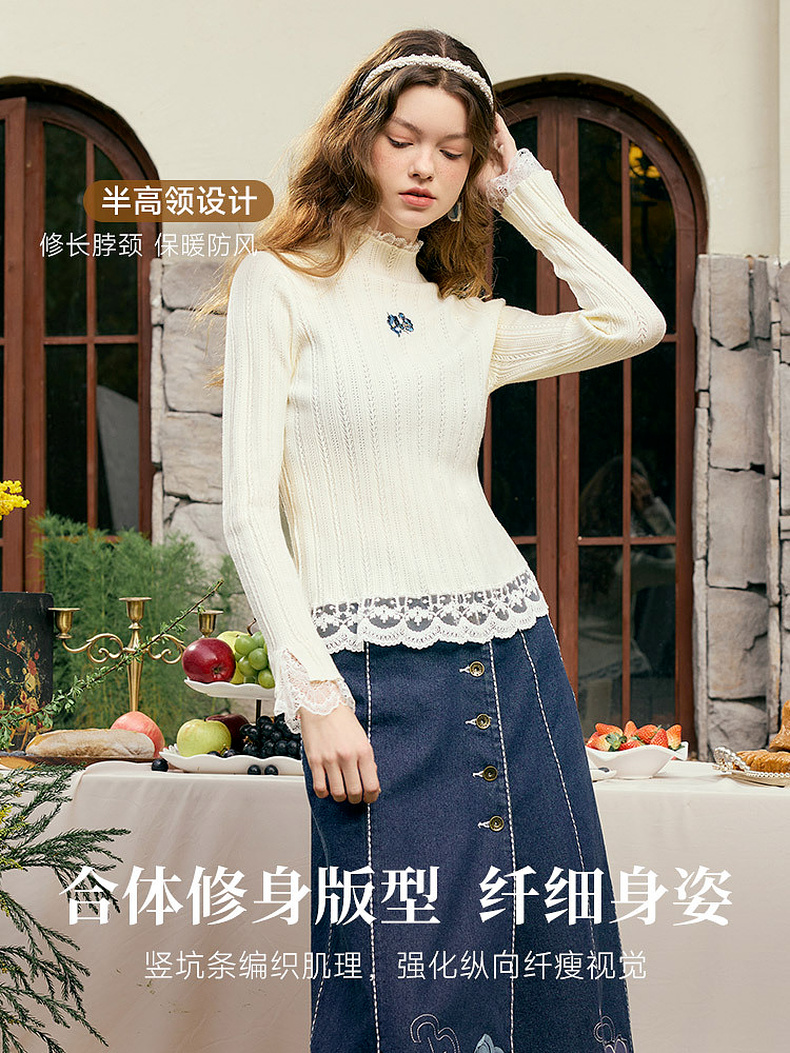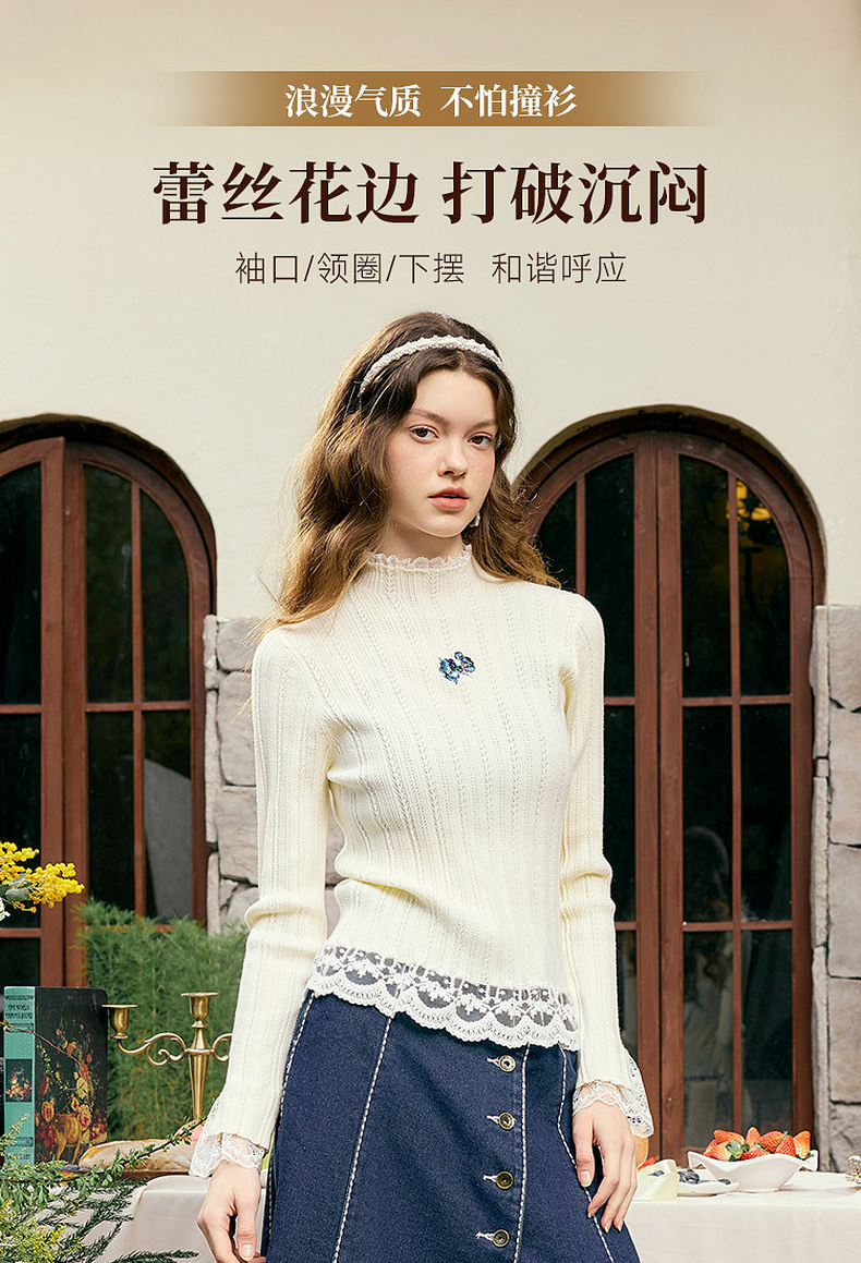 两三事梵高文艺鸢影入梦2025春季新款绣花蕾丝拼接打底衫女针织衫