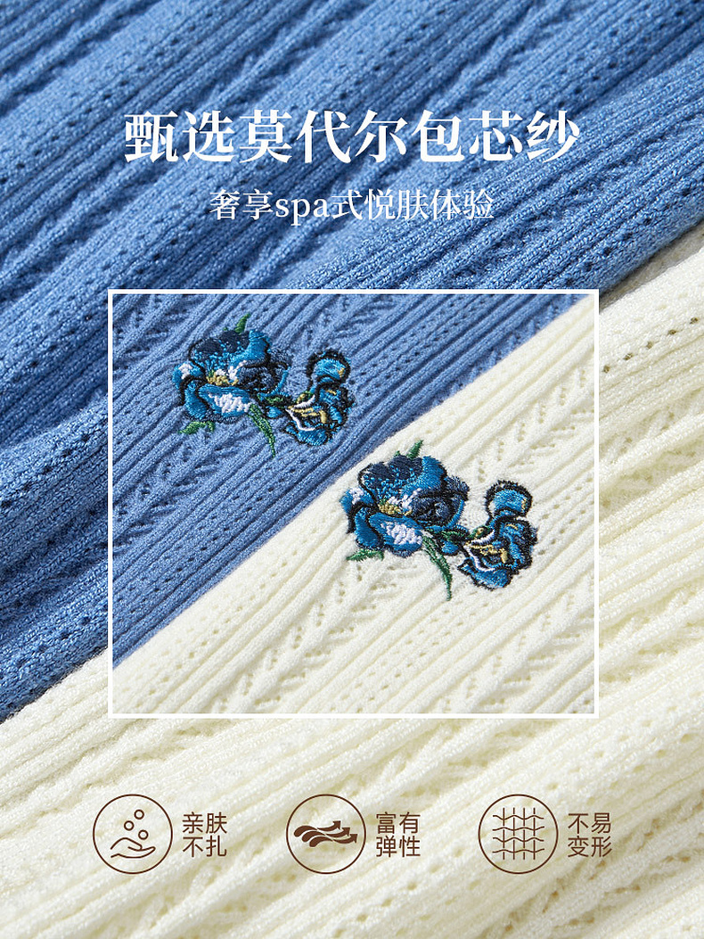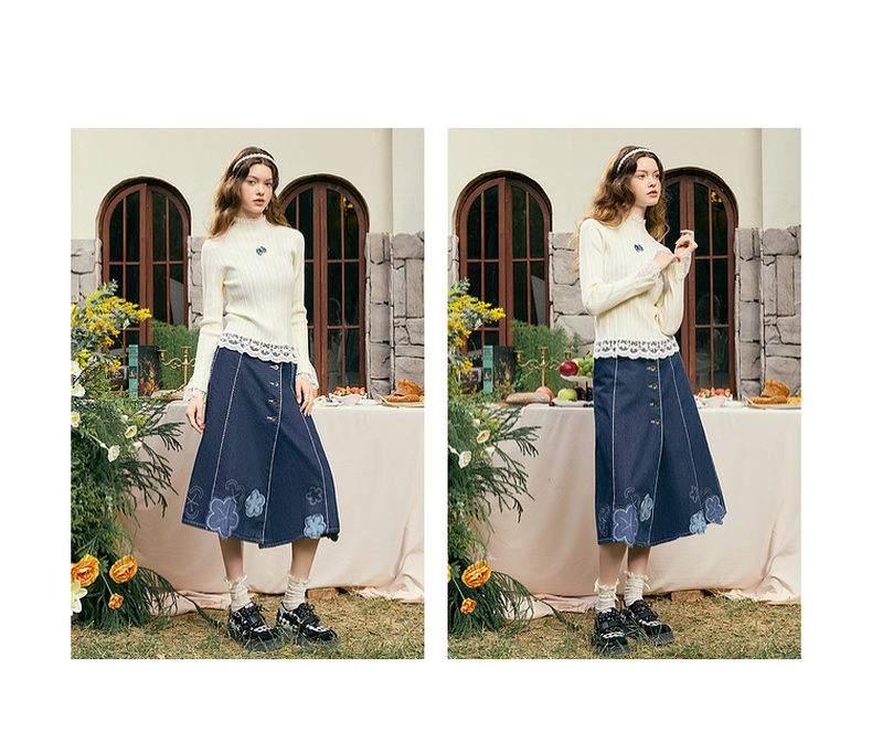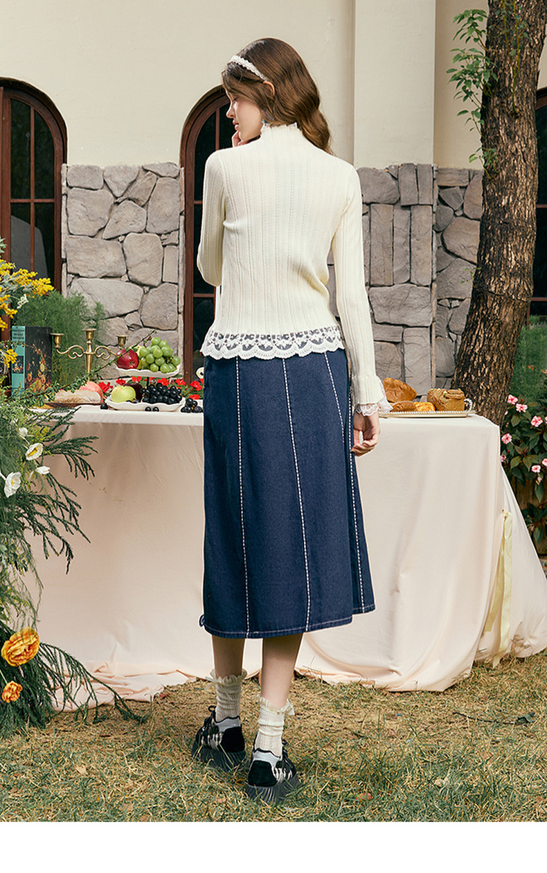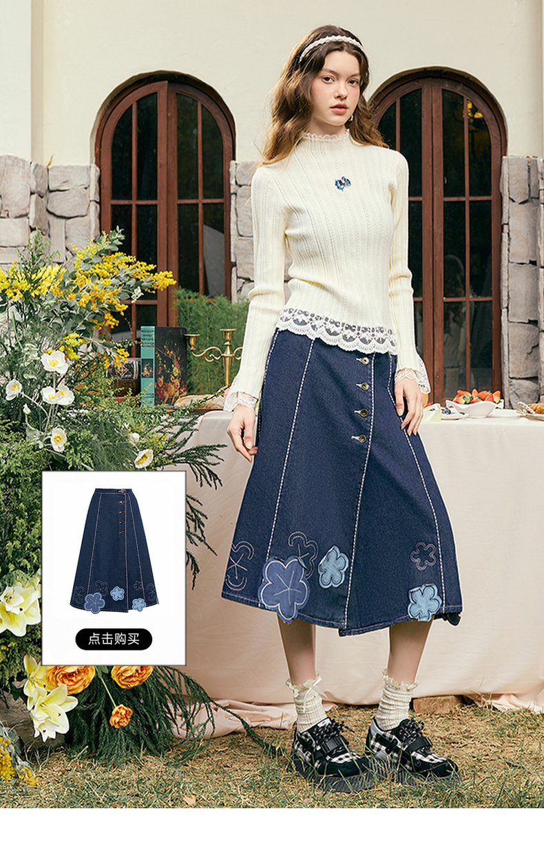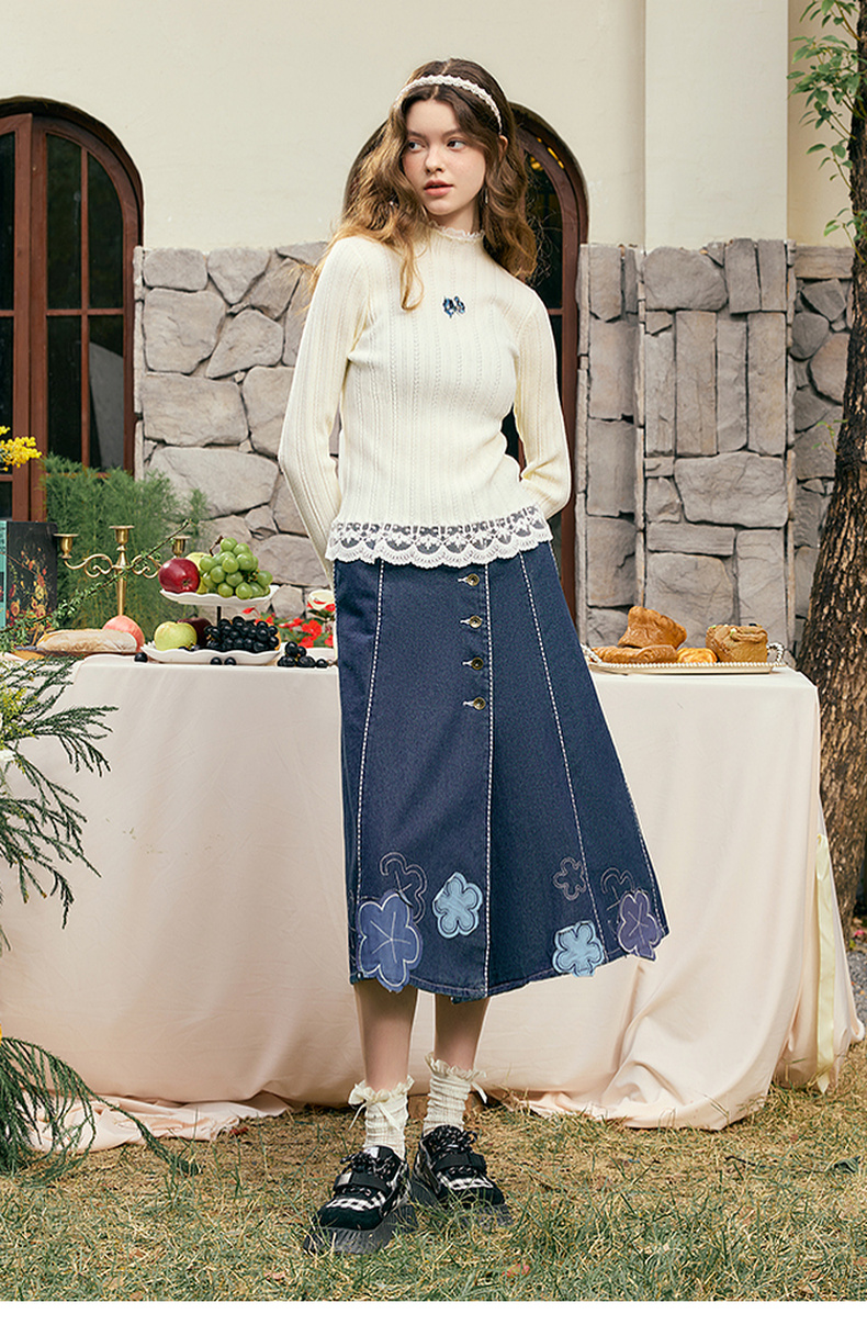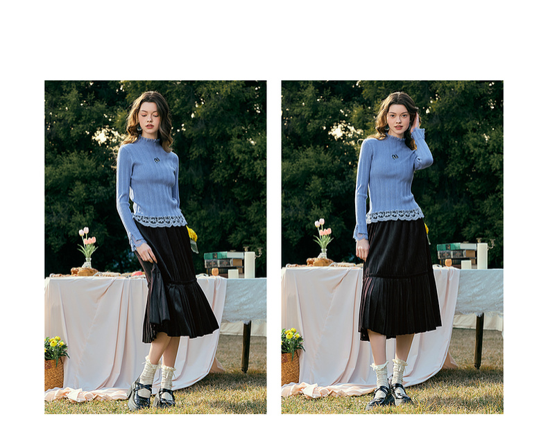 两三事梵高文艺鸢影入梦2025春季新款绣花蕾丝拼接打底衫女针织衫