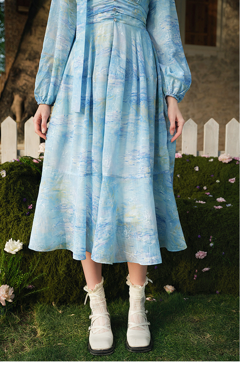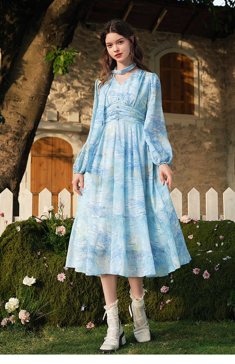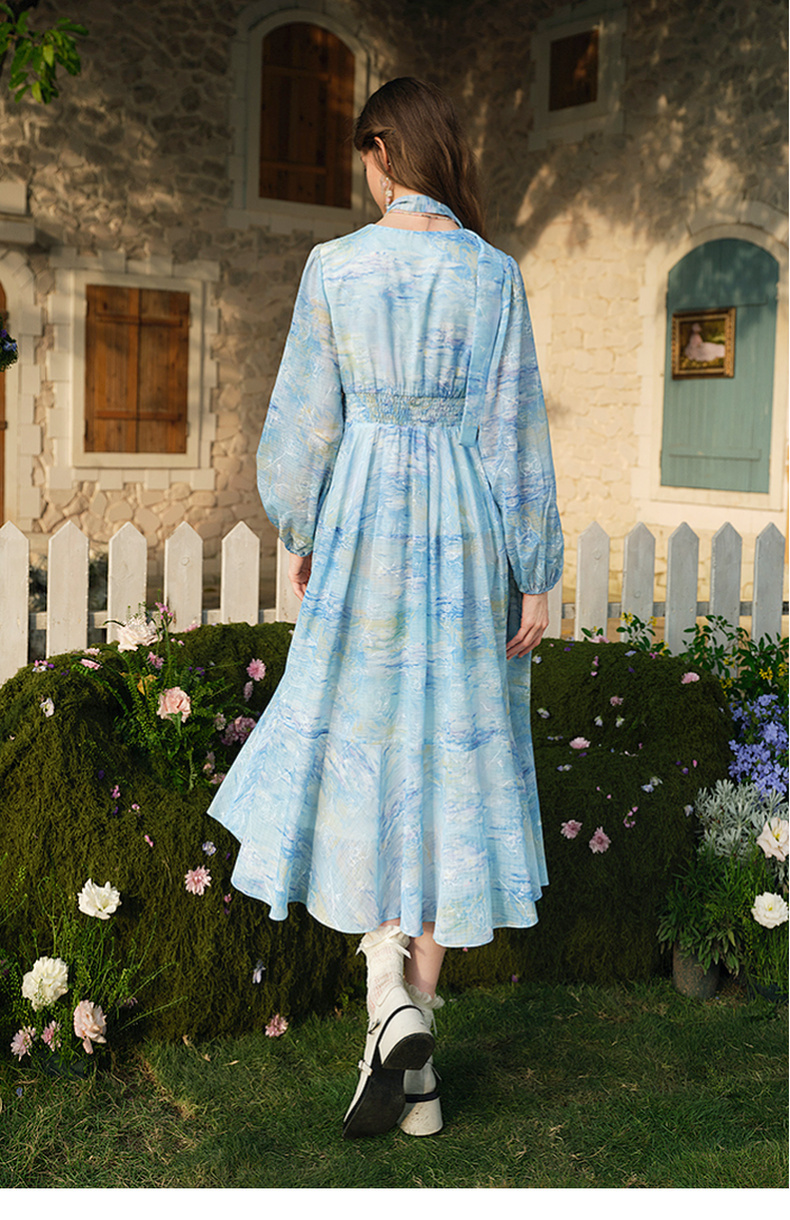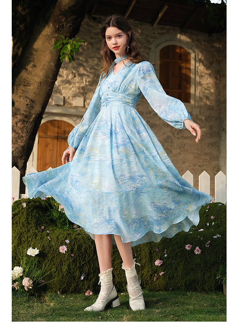 连衣裙 两三事梵高艺术不枉人间春夏新款旅行连衣裙设计感小众碎花裙