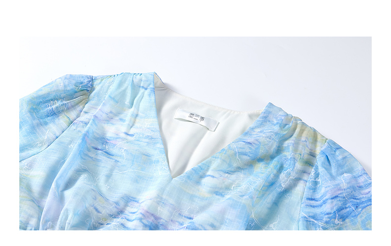 两三事 月缎流萤 2025夏季新款淑女风印花荷叶边刺绣翻领衬衫女