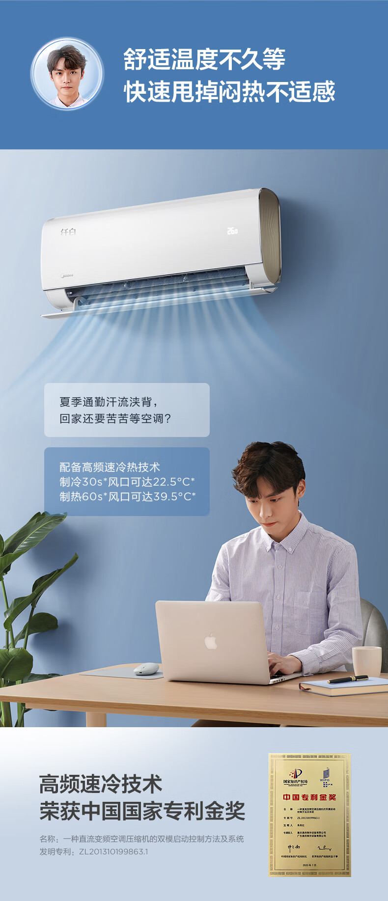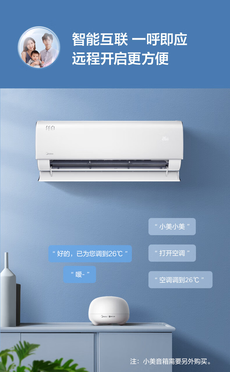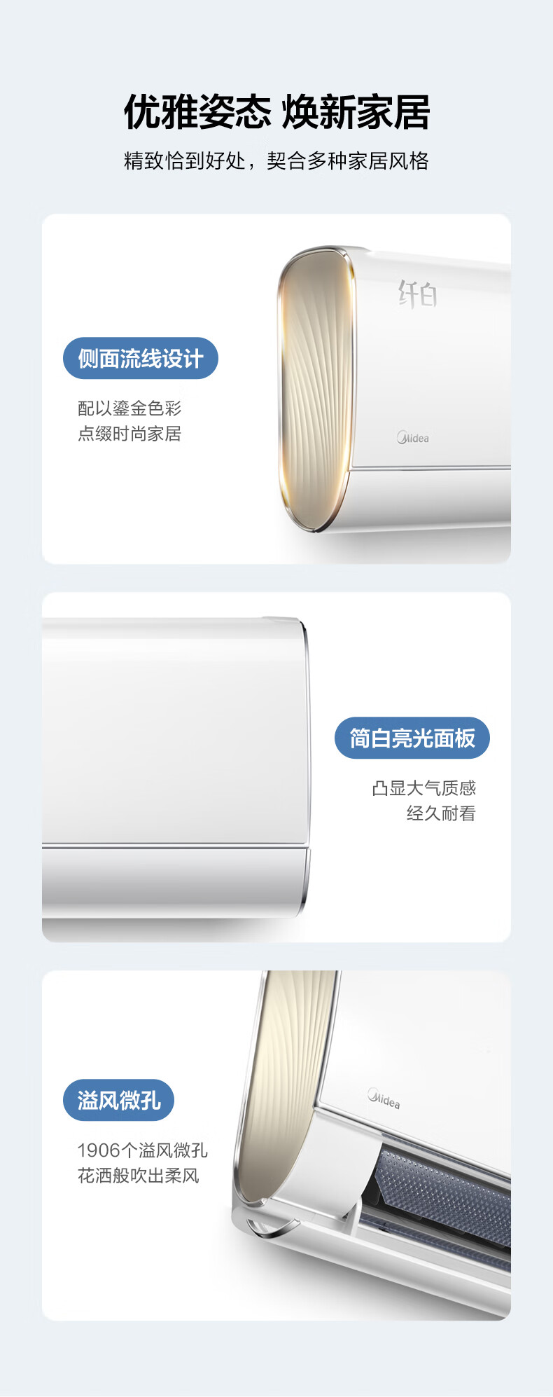 美的(Midea)新一级 纤白 大1.5匹 智能家电 变频冷暖 独立除湿 壁挂式空调挂机 舒适无风感 KFR-35GW/N8MWD1