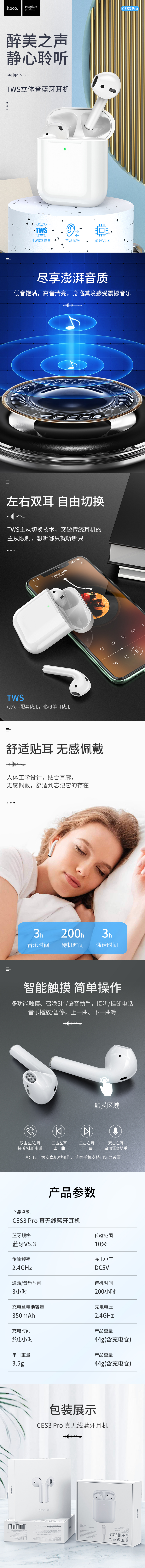 浩酷hoco. 真无线蓝牙耳机CES3 Pro