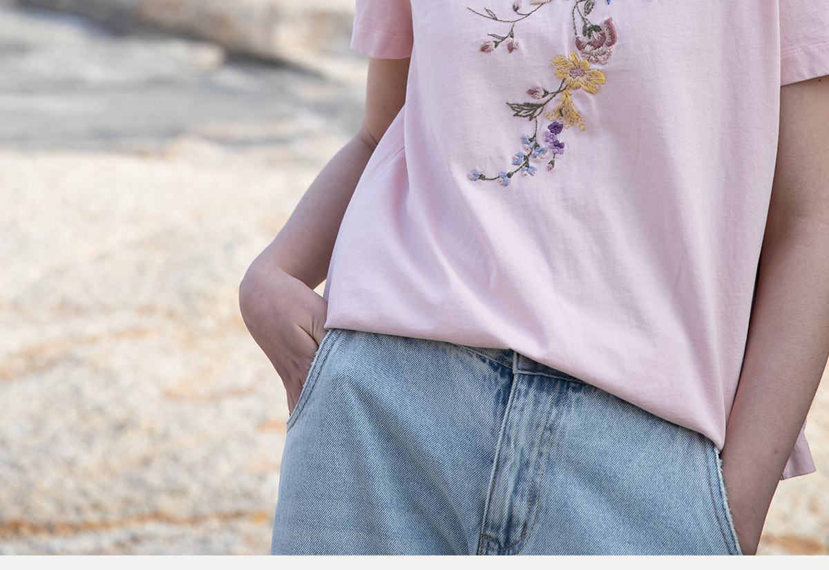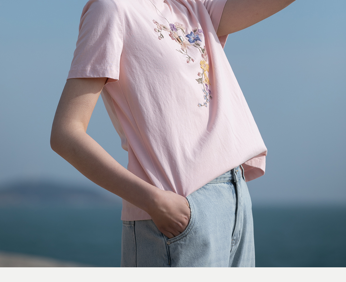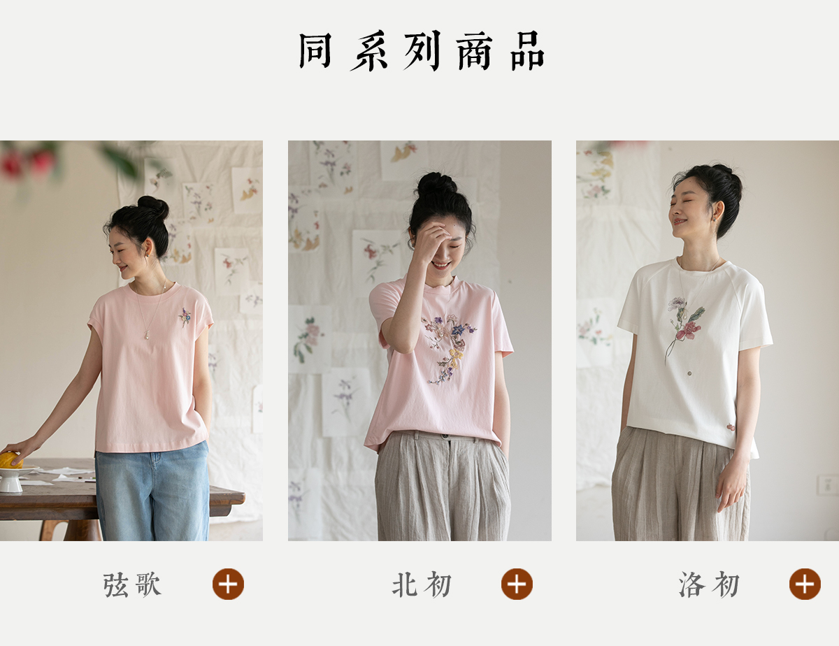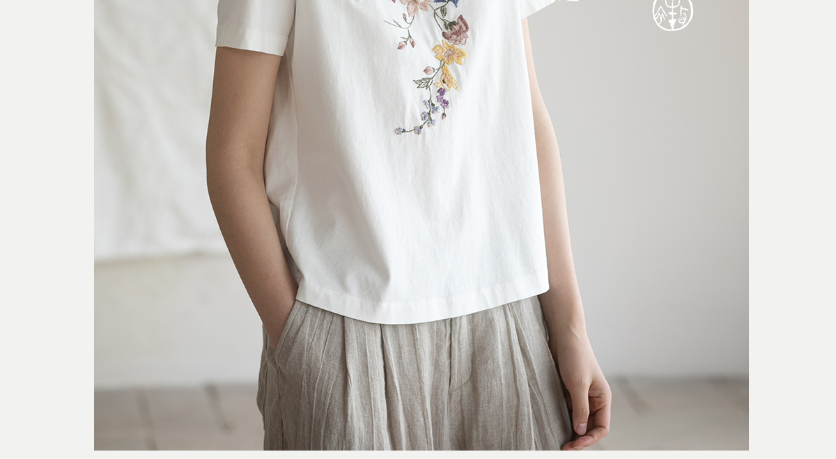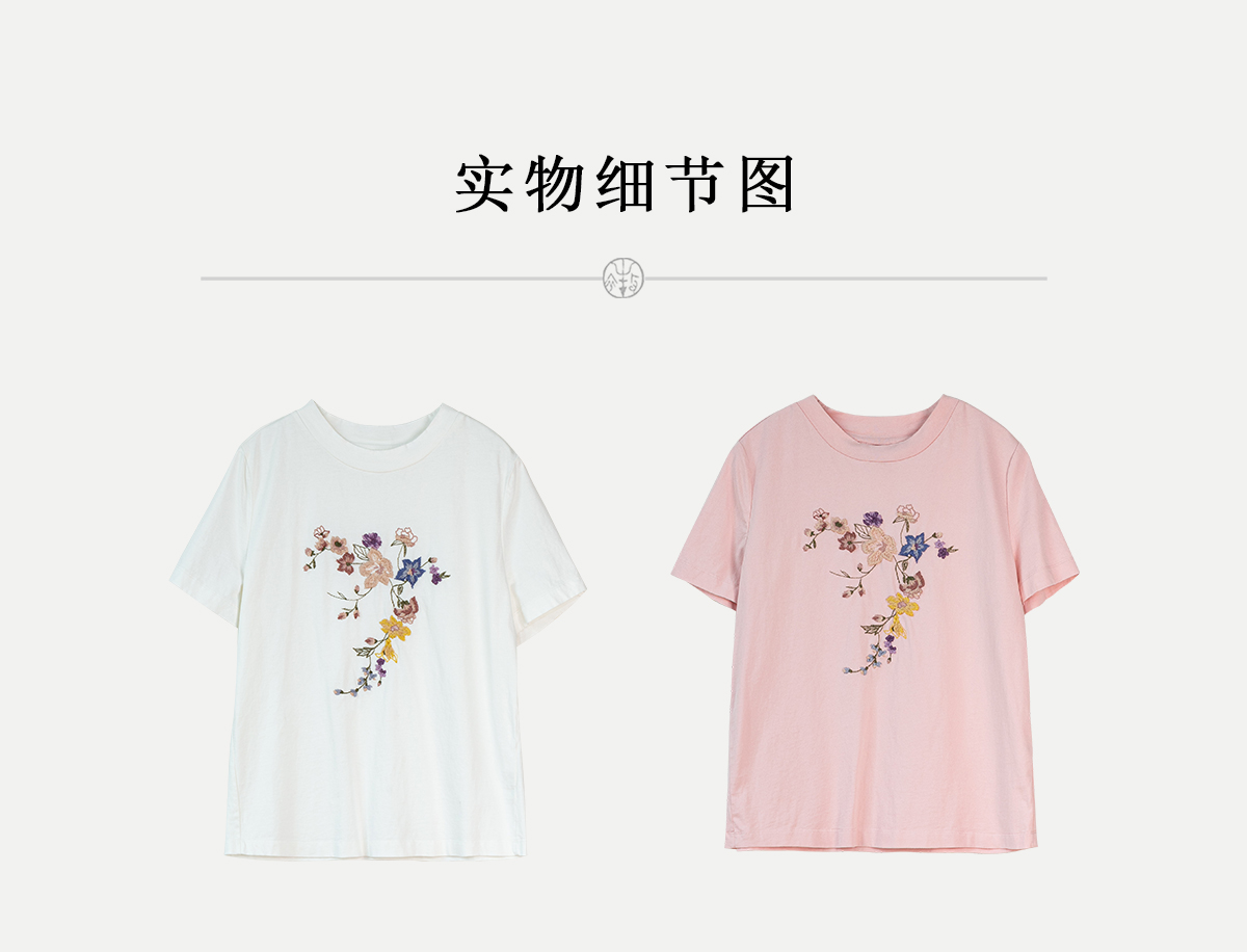 牧衣游原创 机绣纯棉T恤女夏新品舒适亲肤百搭简约圆领短袖 北初