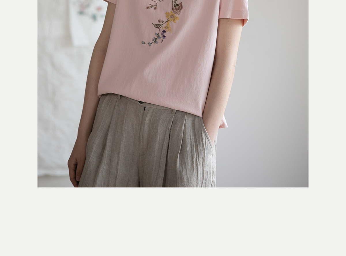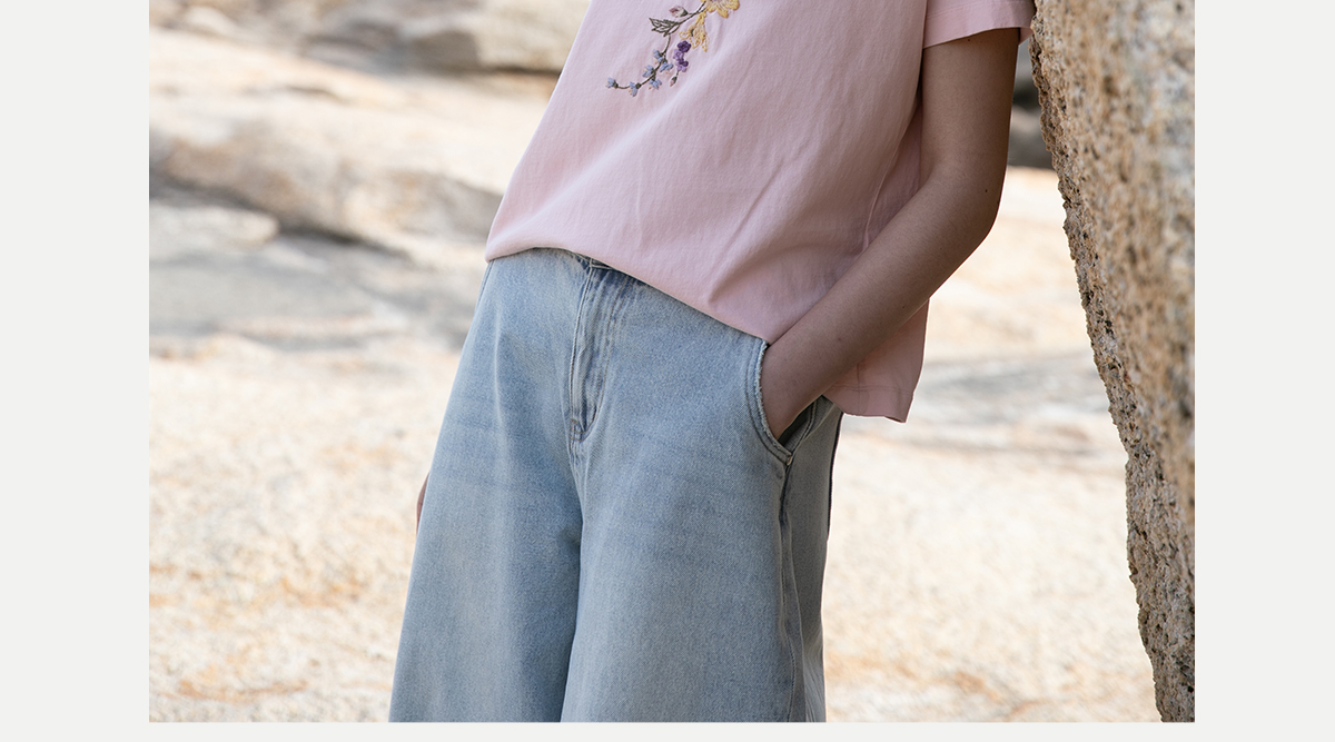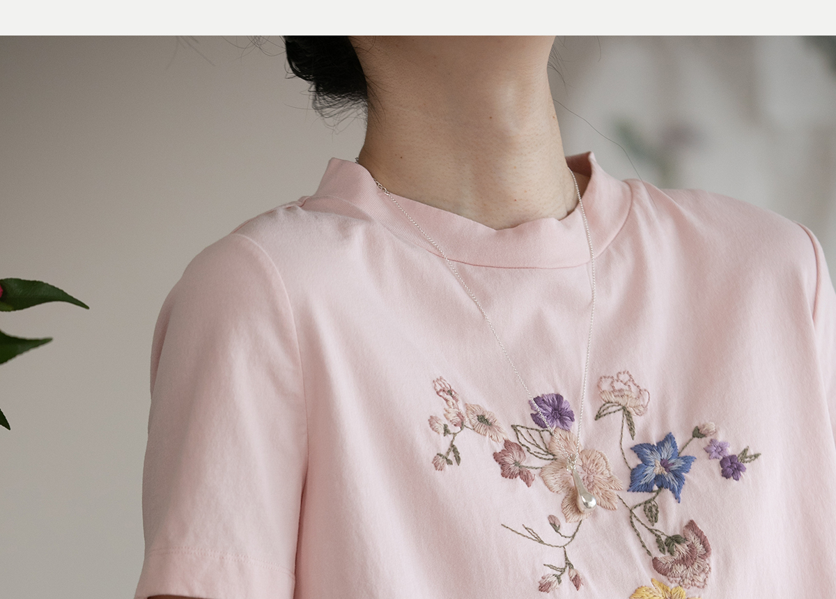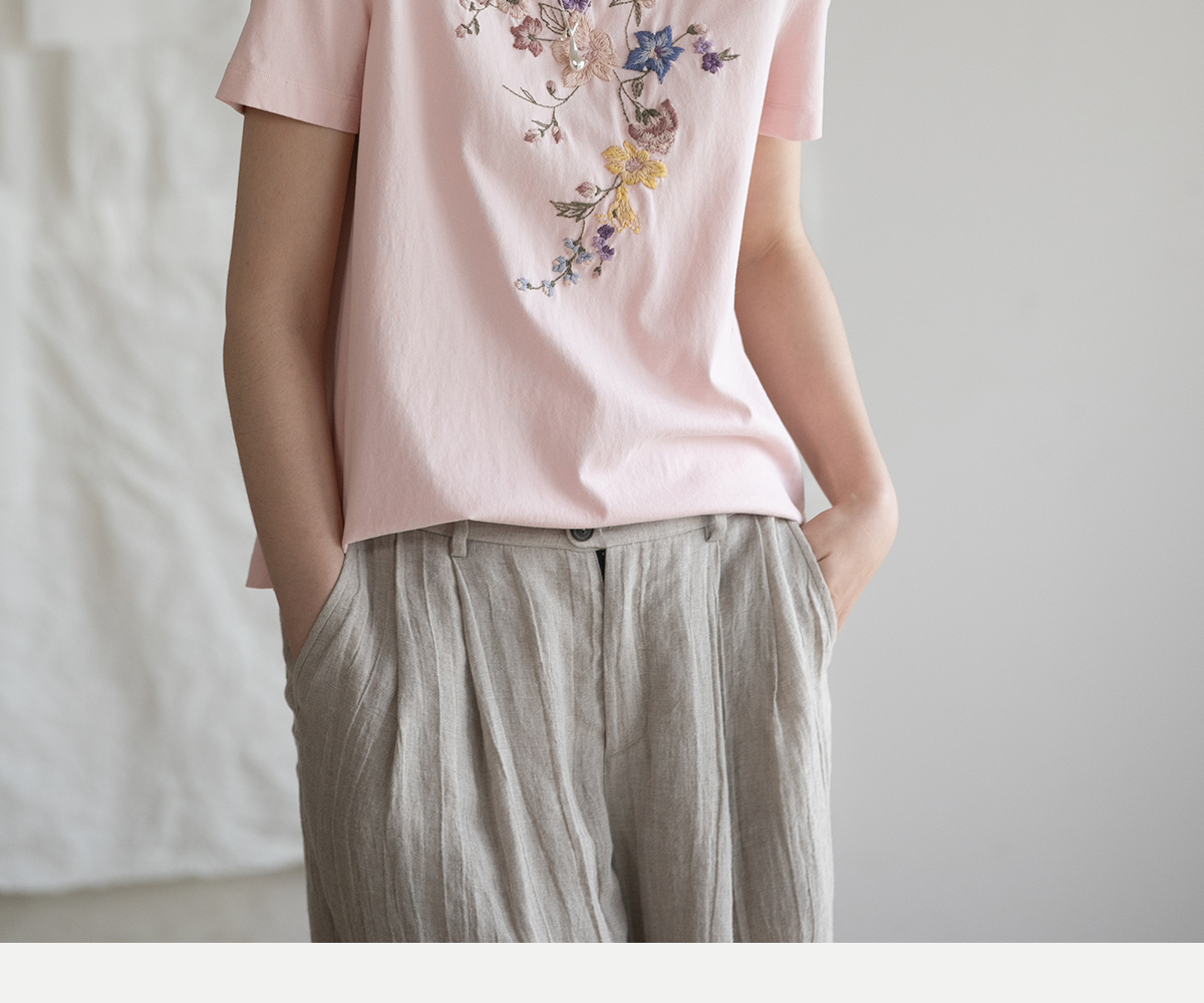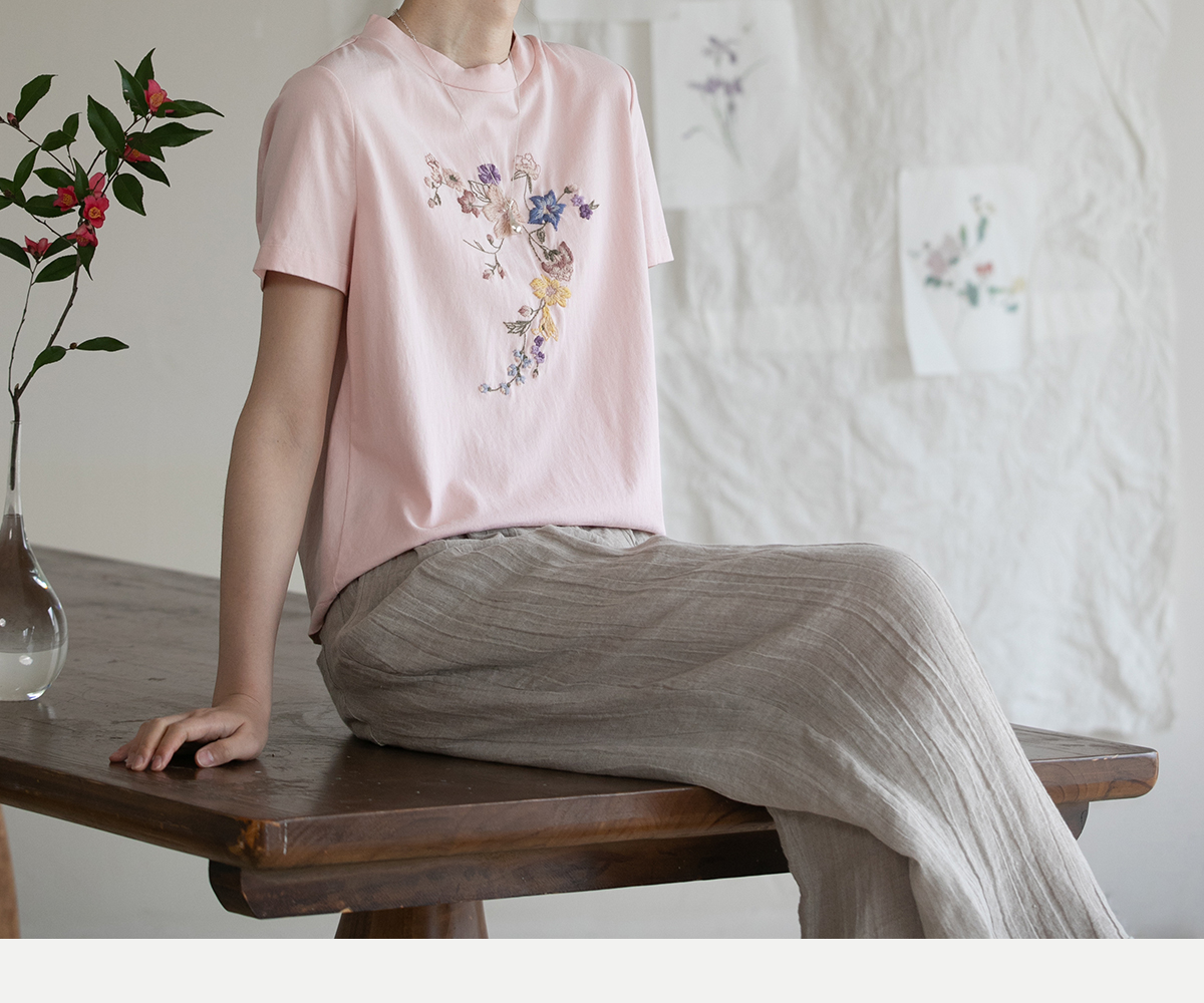 牧衣游原创 机绣纯棉T恤女夏新品舒适亲肤百搭简约圆领短袖 北初