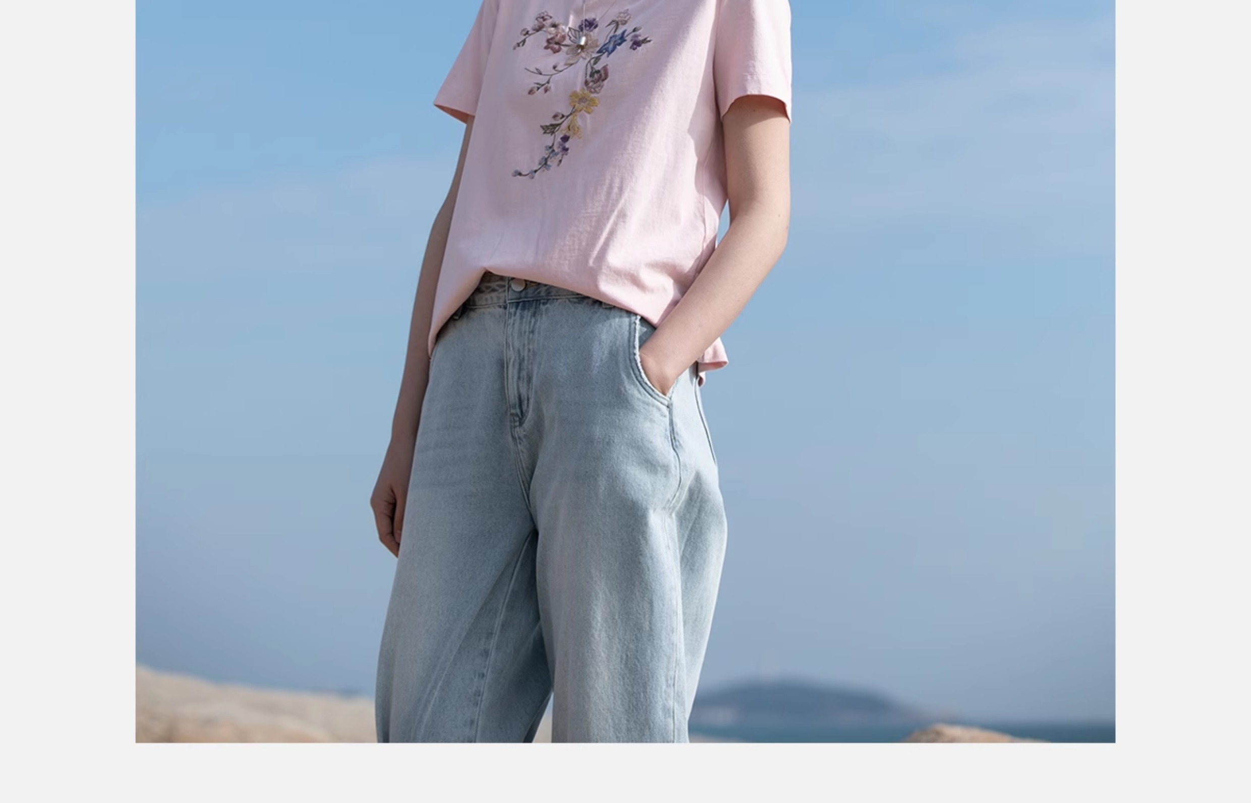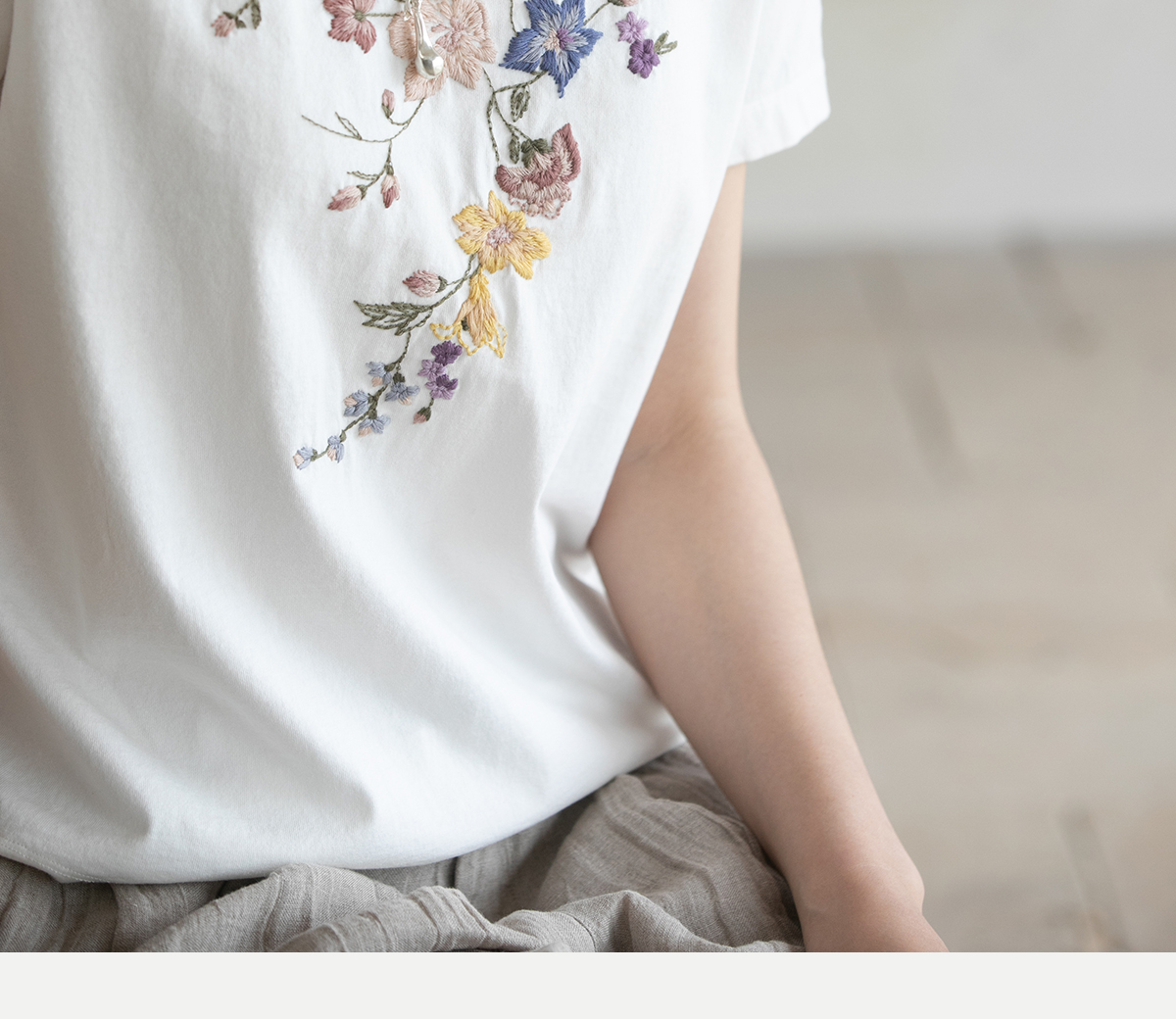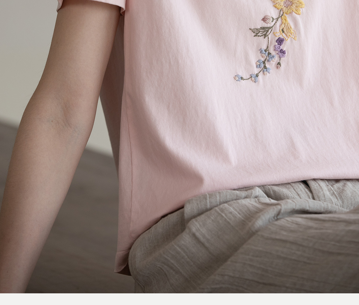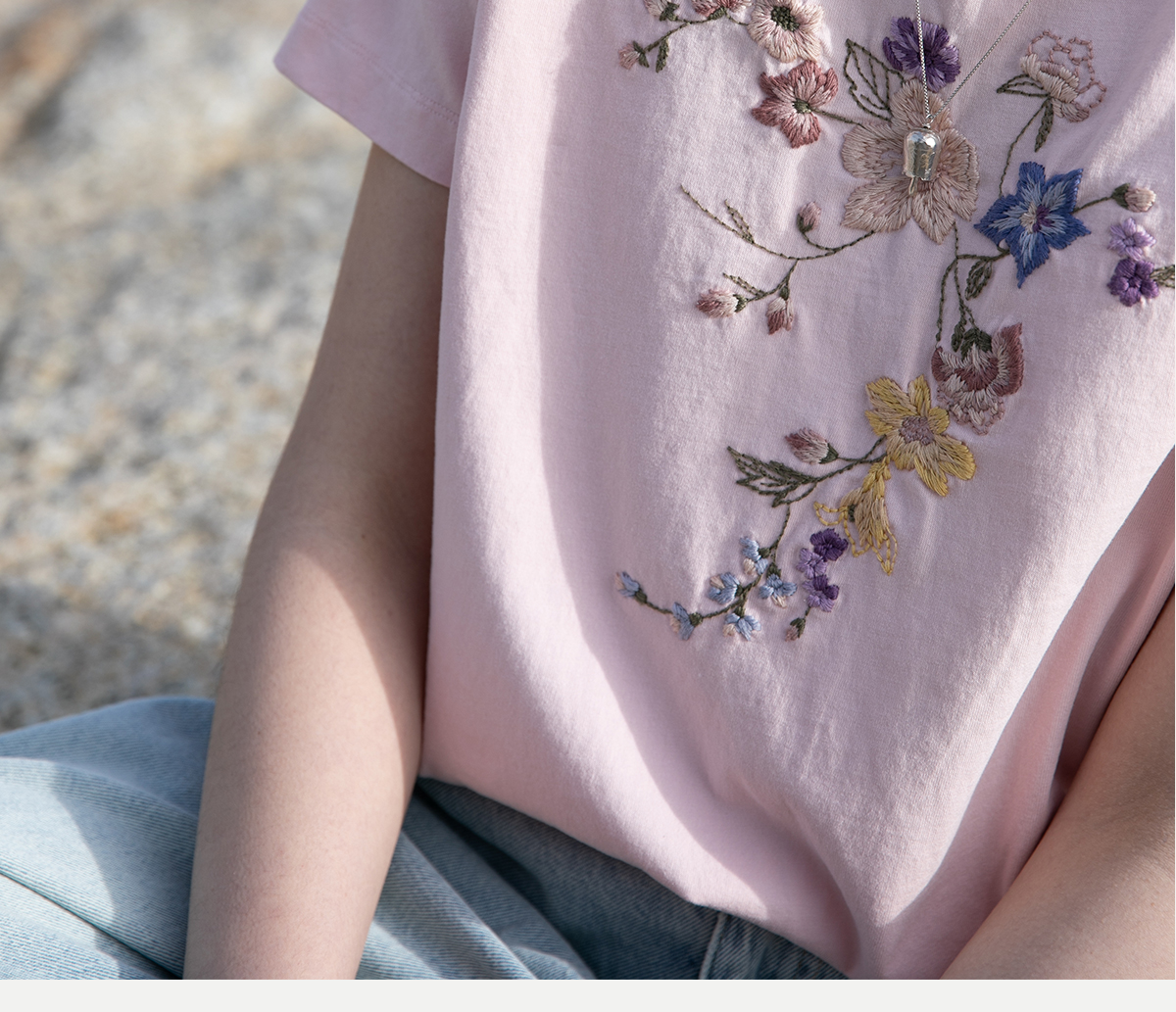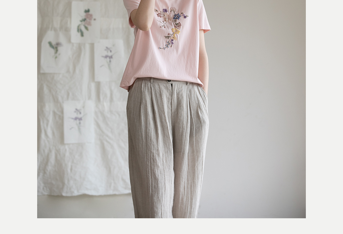 牧衣游原创 机绣纯棉T恤女夏新品舒适亲肤百搭简约圆领短袖 北初