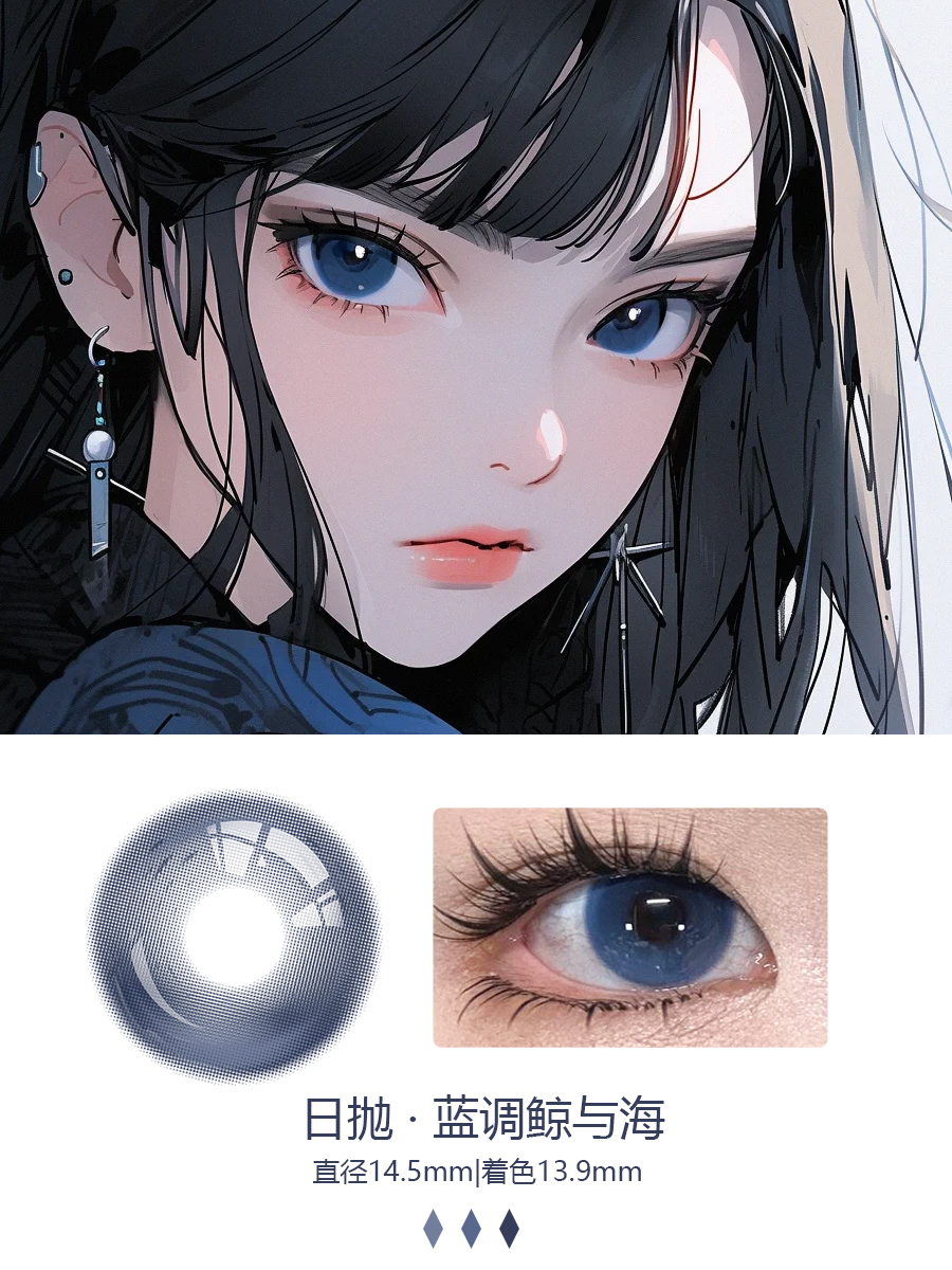 贝可加 蓝调鲸与海 半年抛 两片 14.5mm 参考着色 13.9mm 基弧 8.5 含水 40% 新锐国货