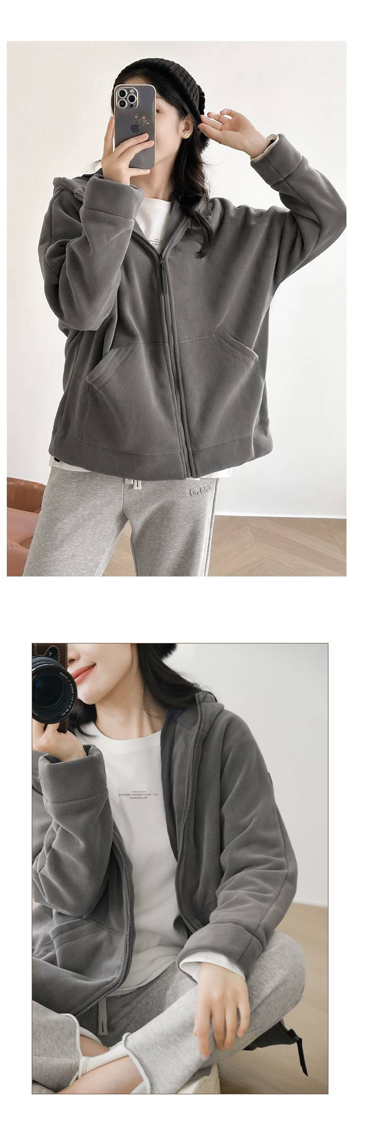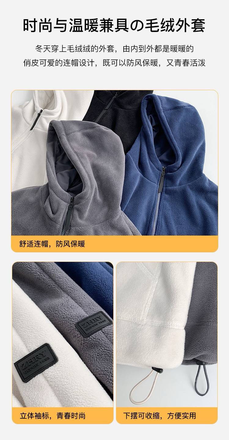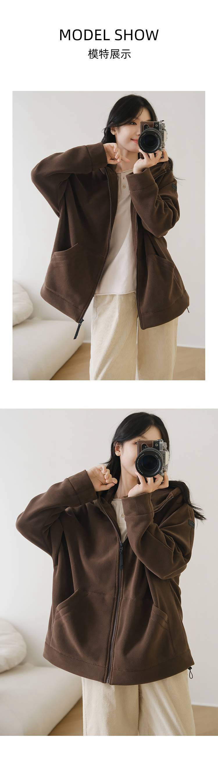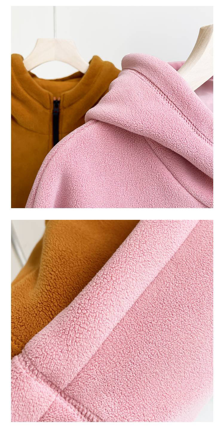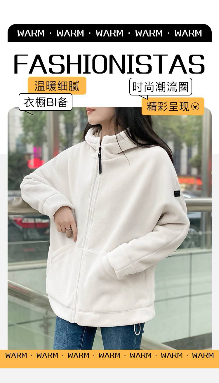 女士阔版落肩袖抓绒外套