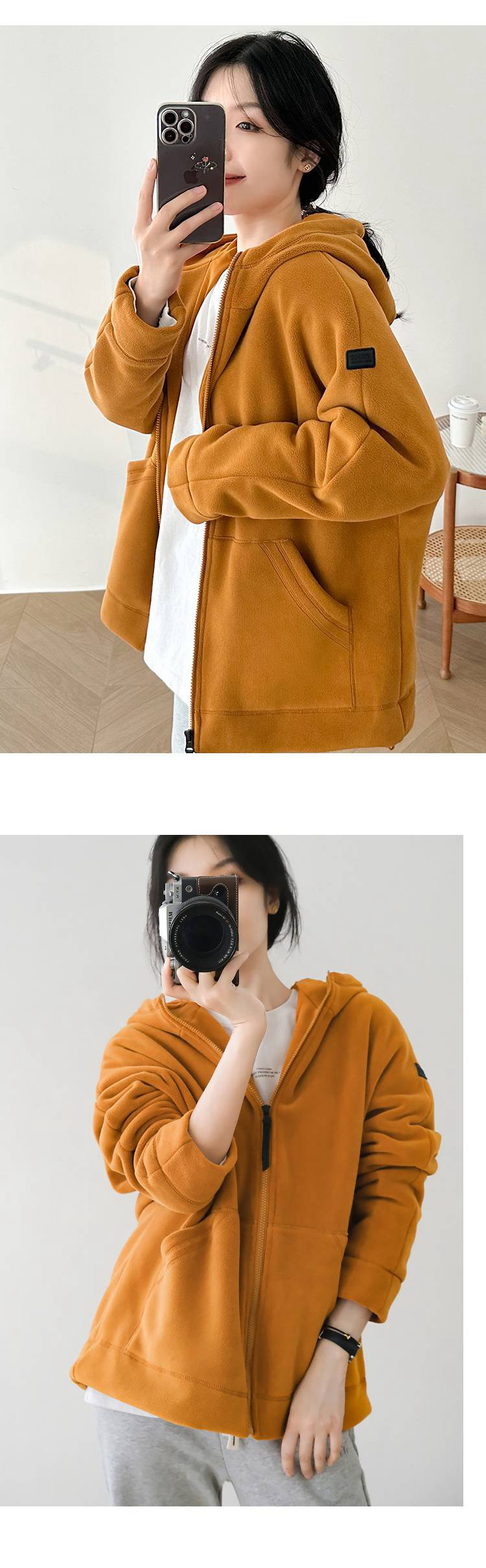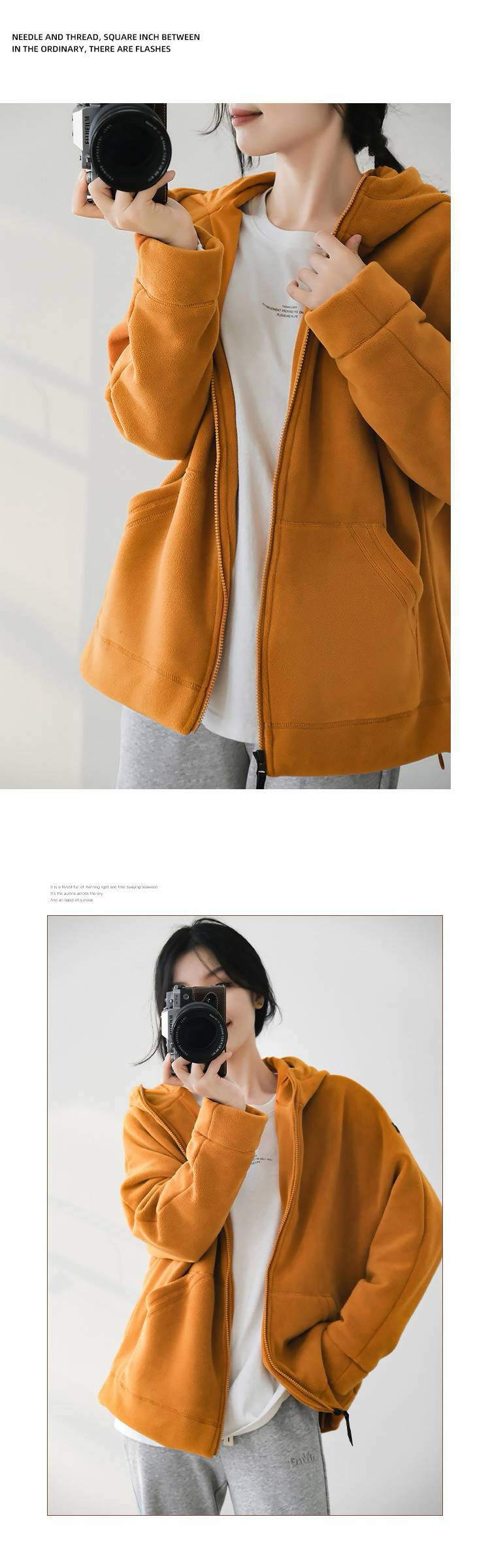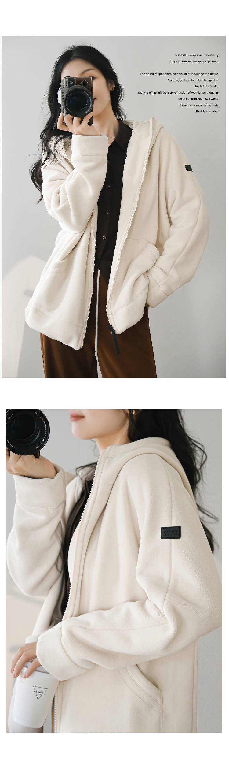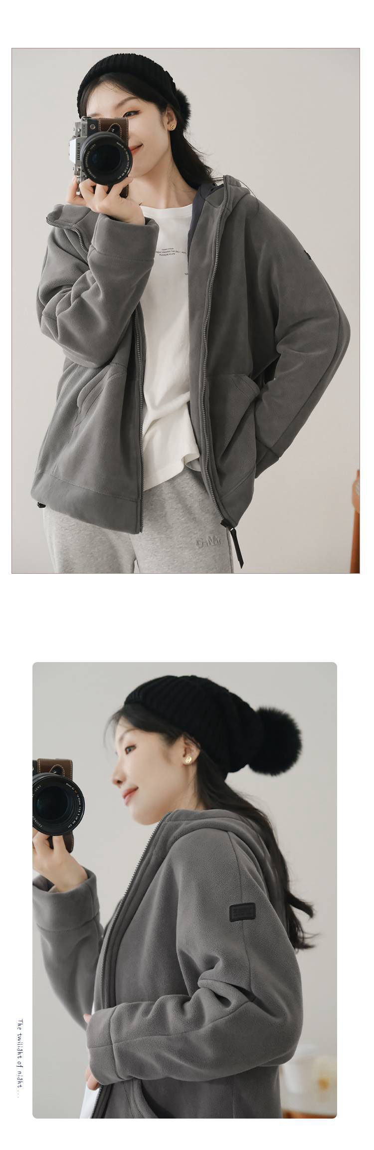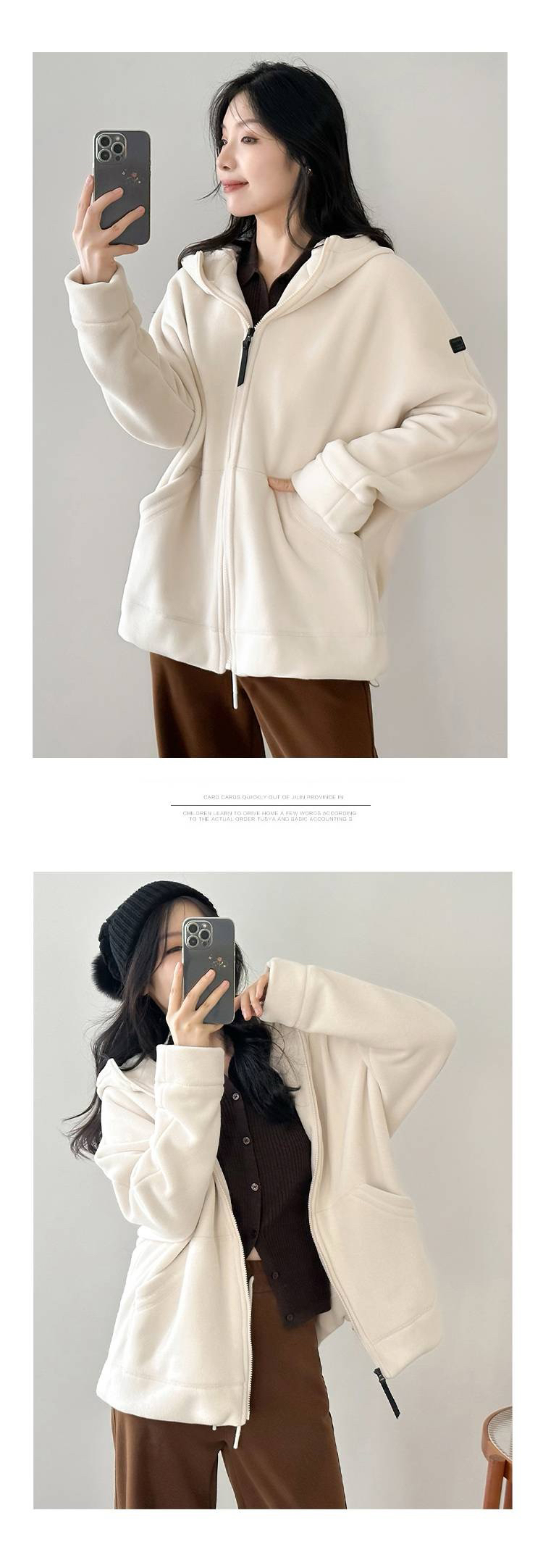 女士阔版落肩袖抓绒外套