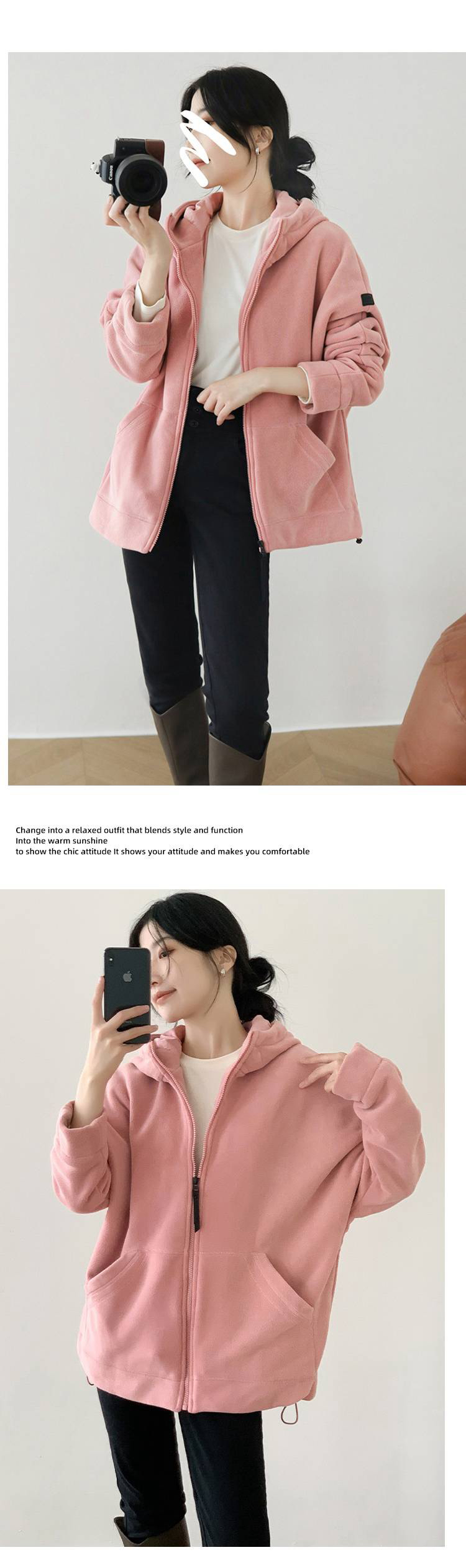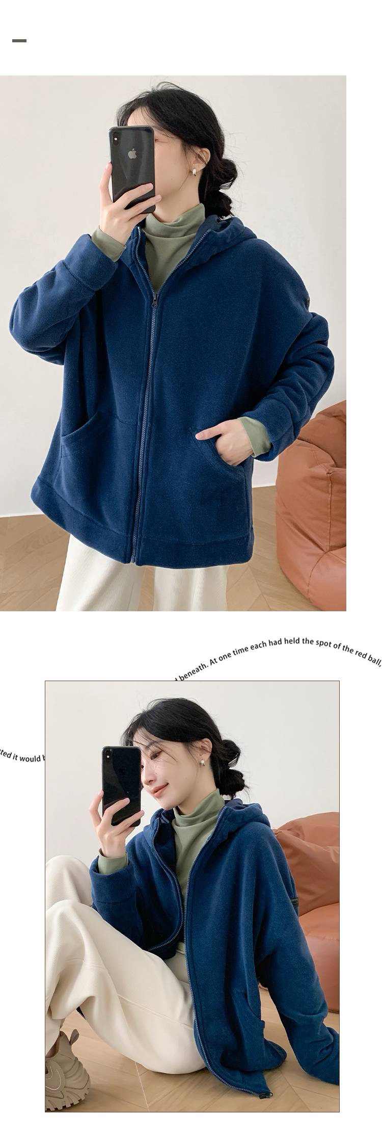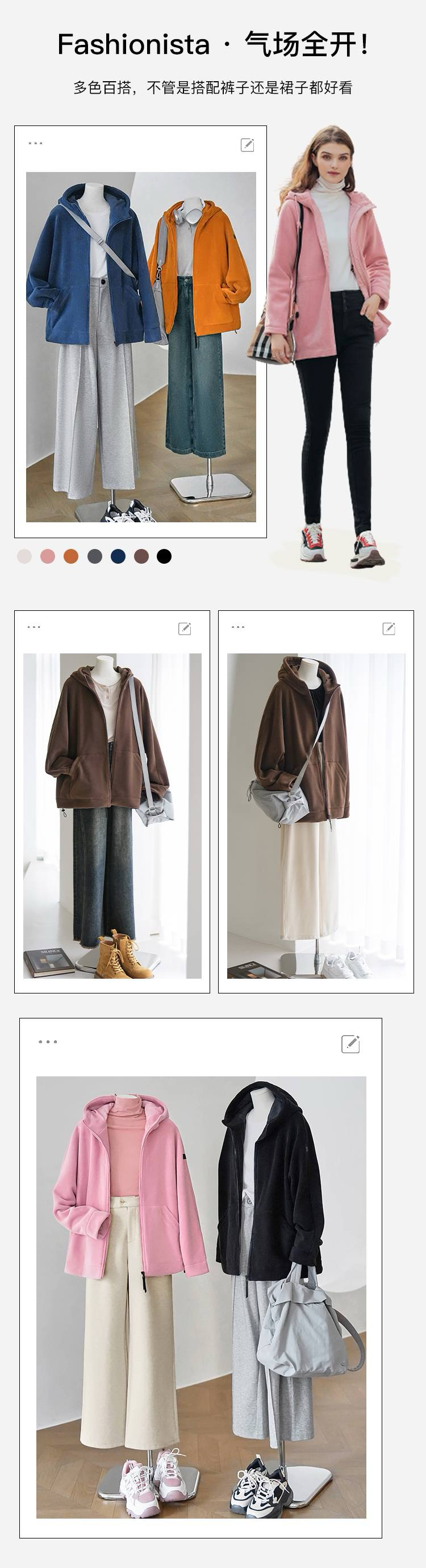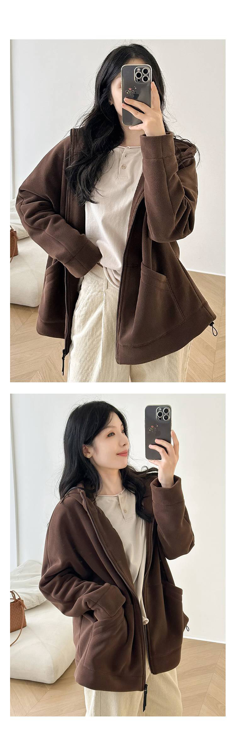 女士阔版落肩袖抓绒外套