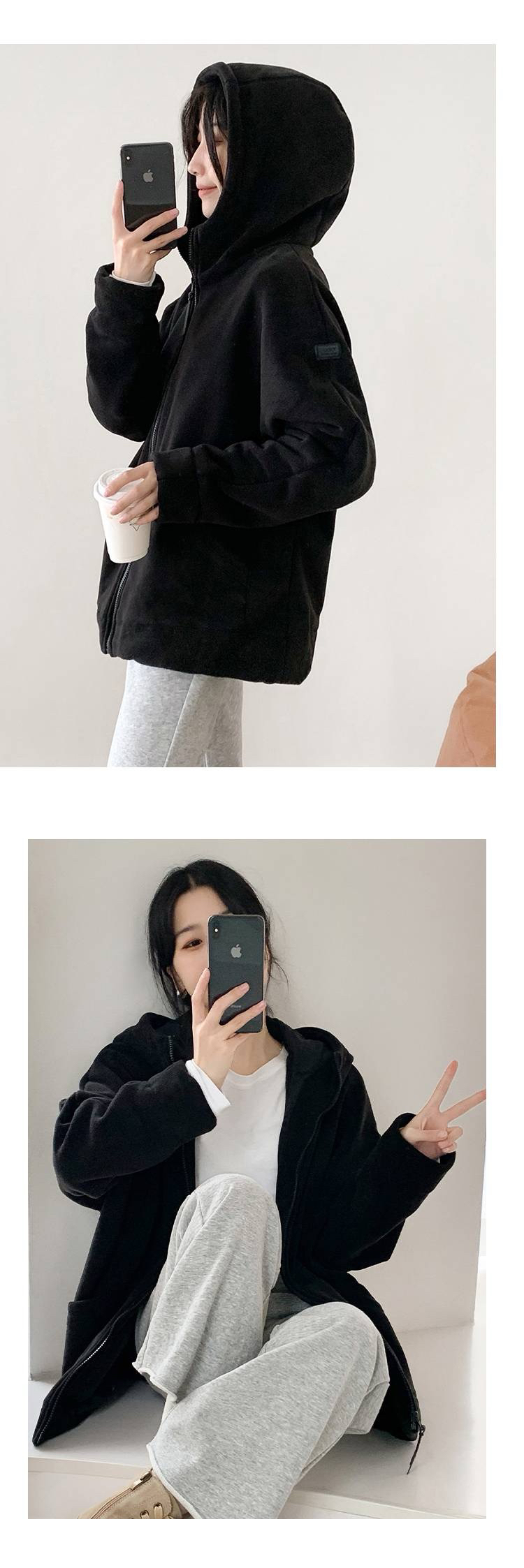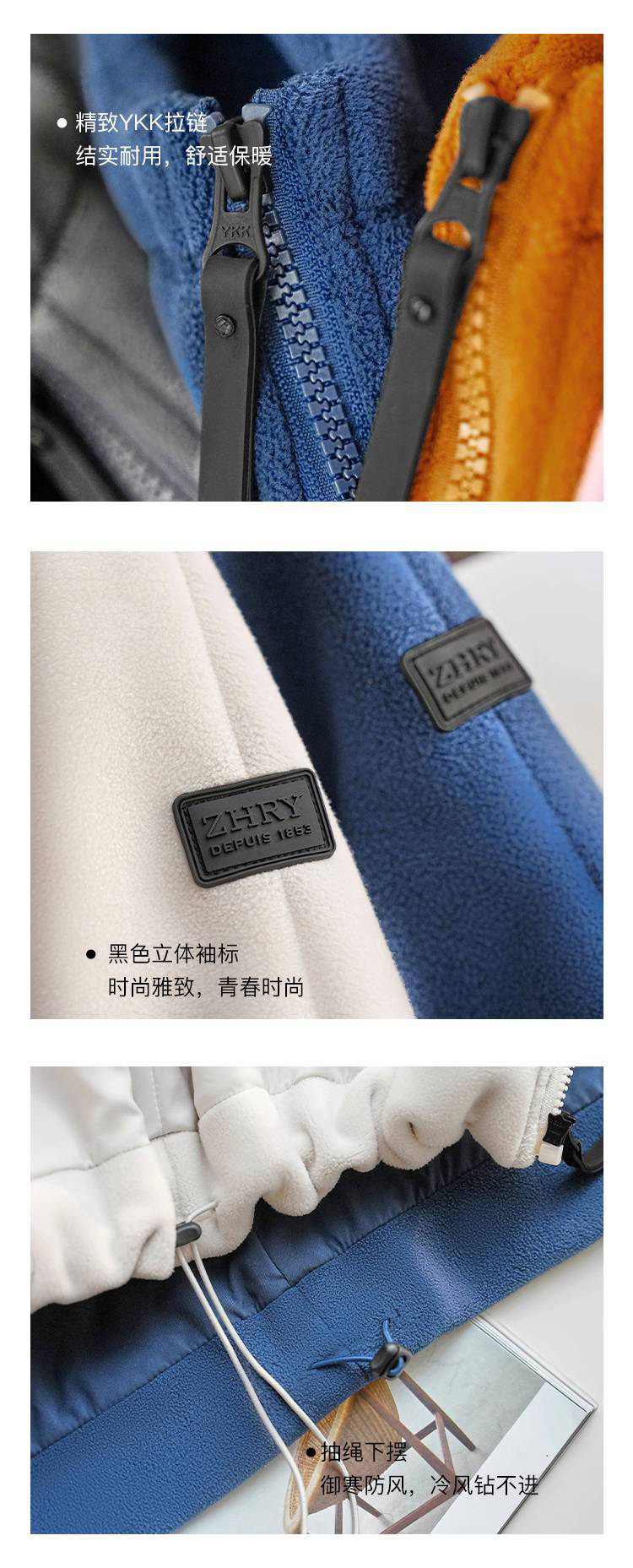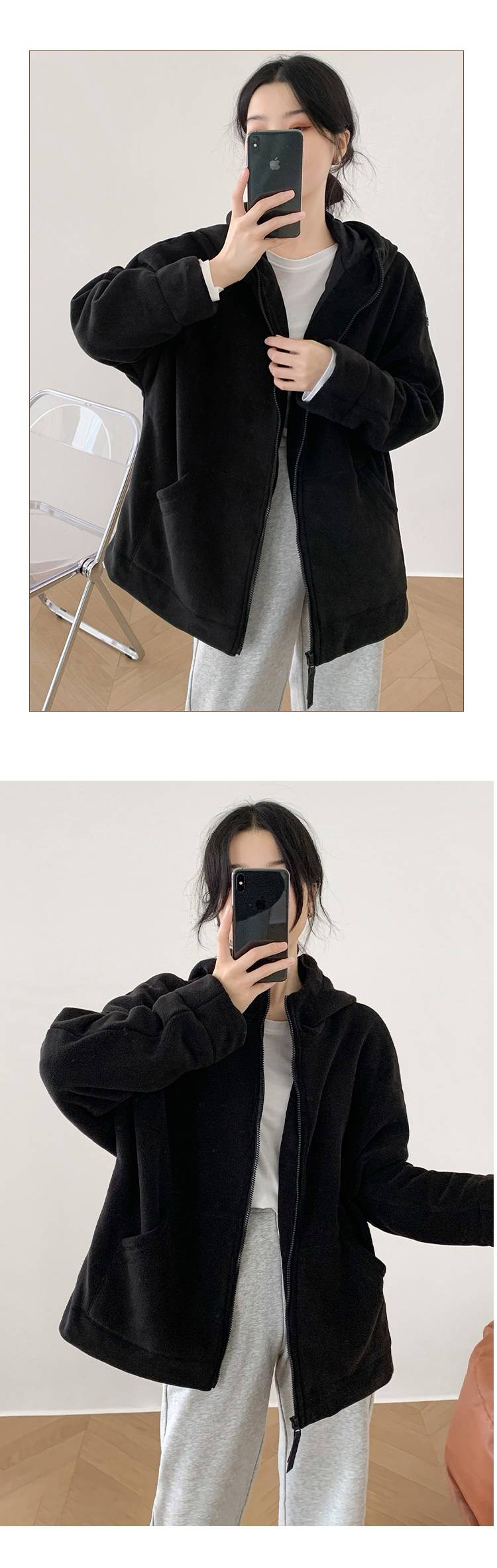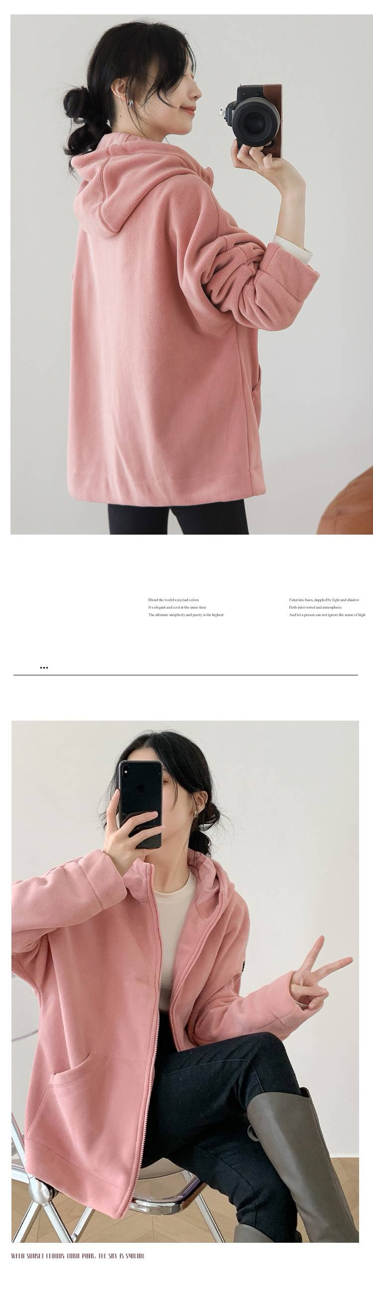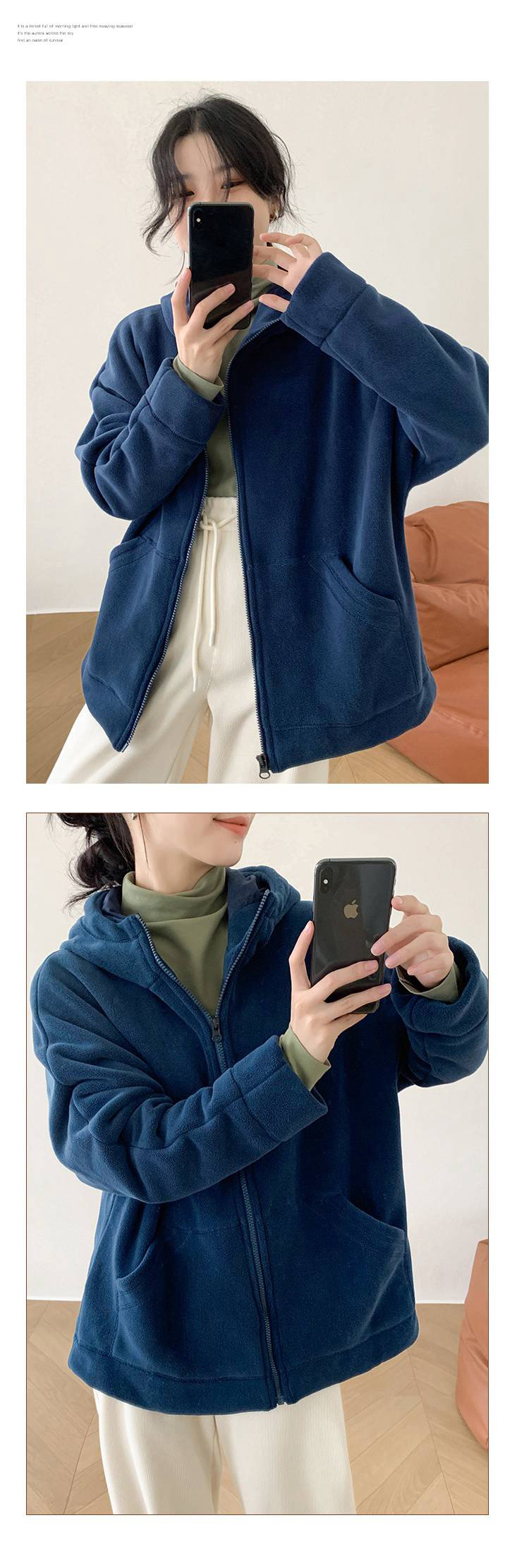 女士阔版落肩袖抓绒外套