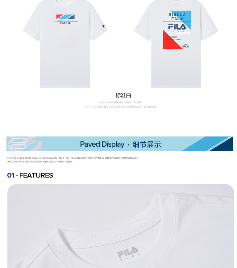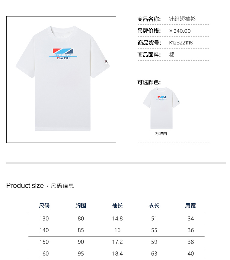 小斐乐儿童短袖T恤2022夏季新款男大童时尚薄款透气运动T恤K12B221118F