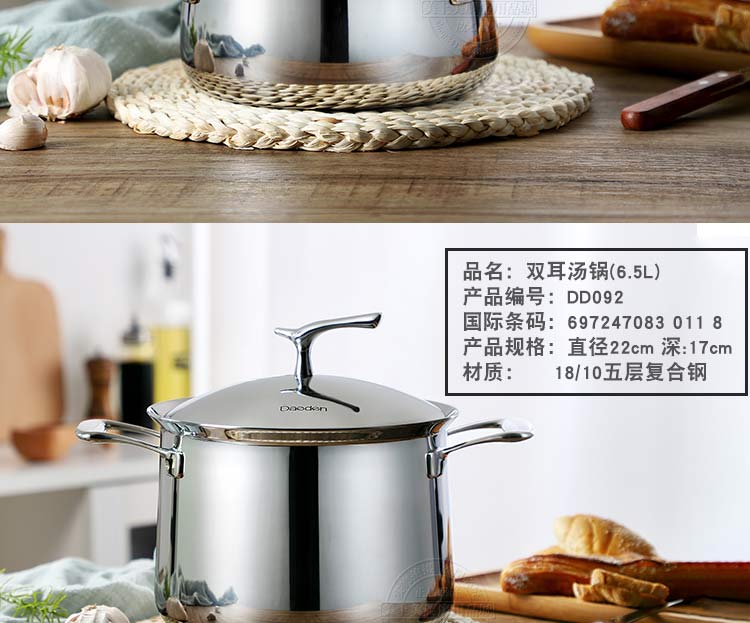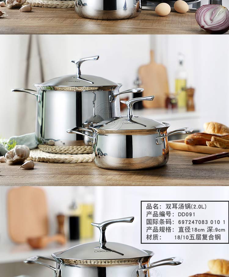 德国戴德诺亚五层钢不锈钢双耳汤锅18CM