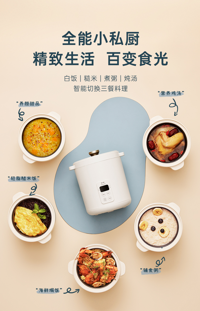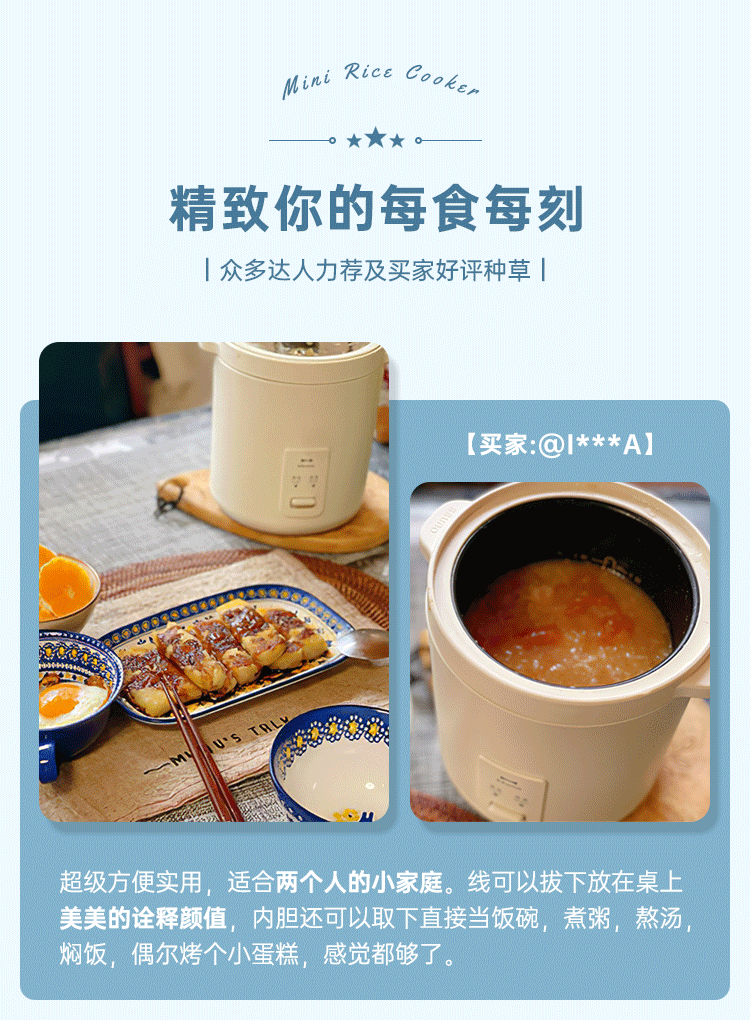 BRUNO复古电饭煲小型2-3人食迷你饭煲多功能家用mini电饭锅