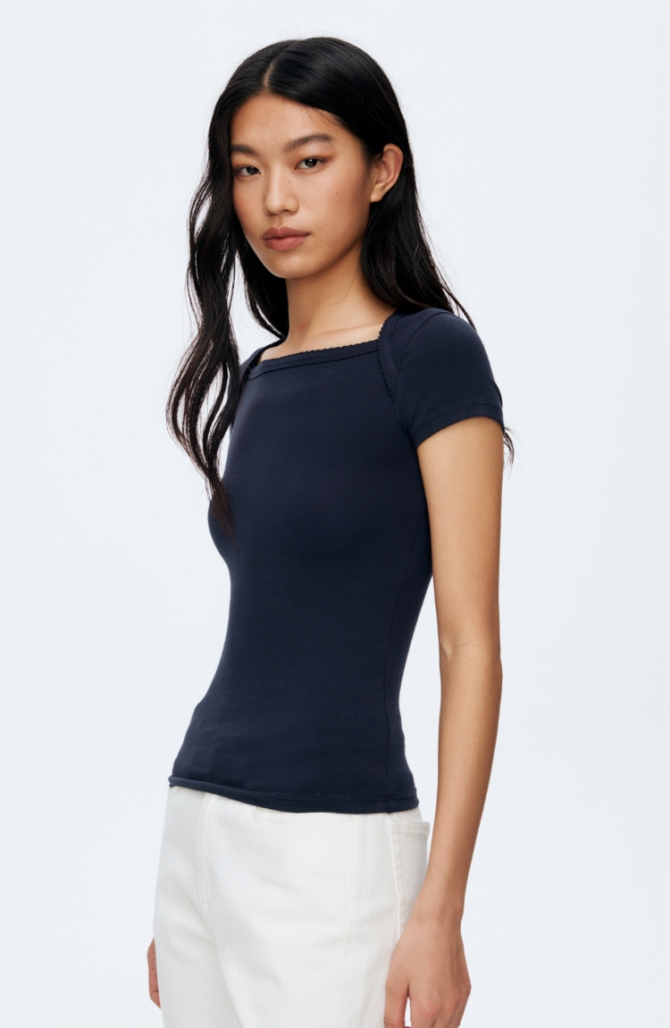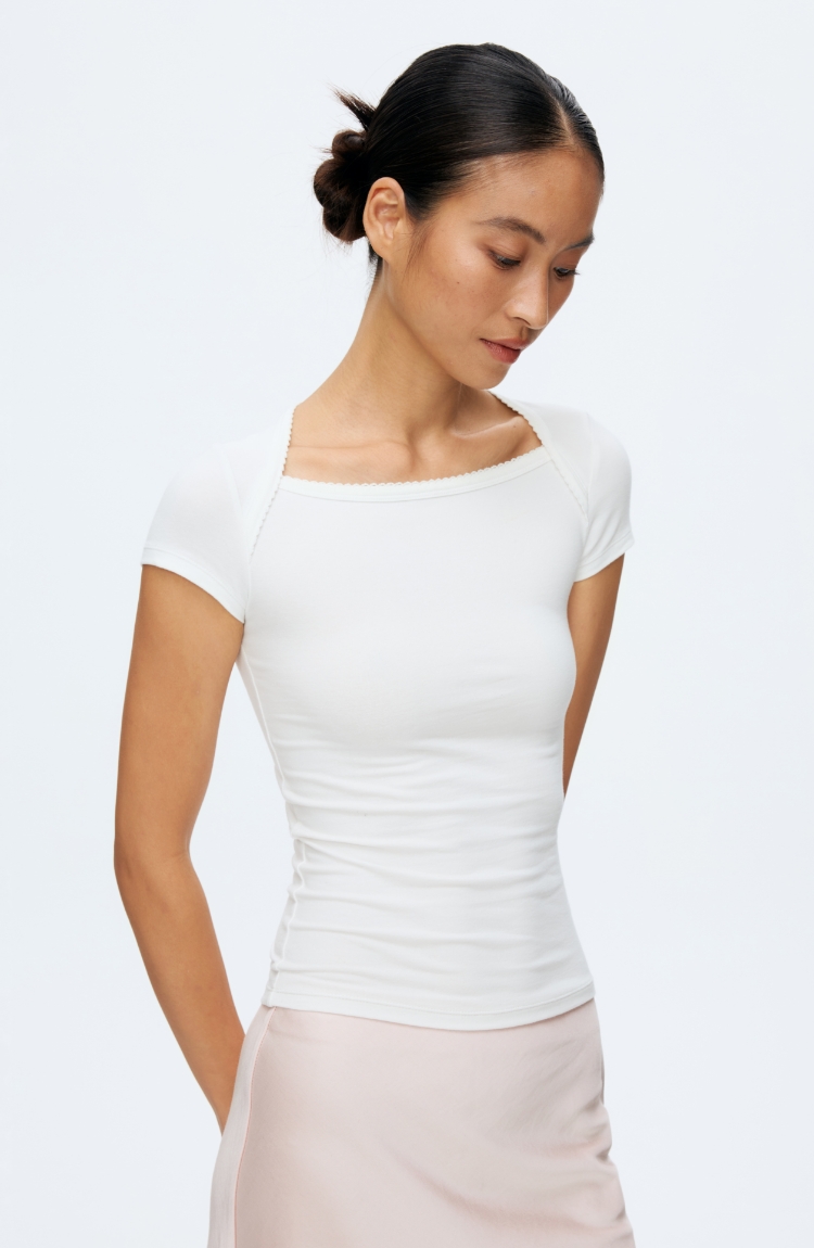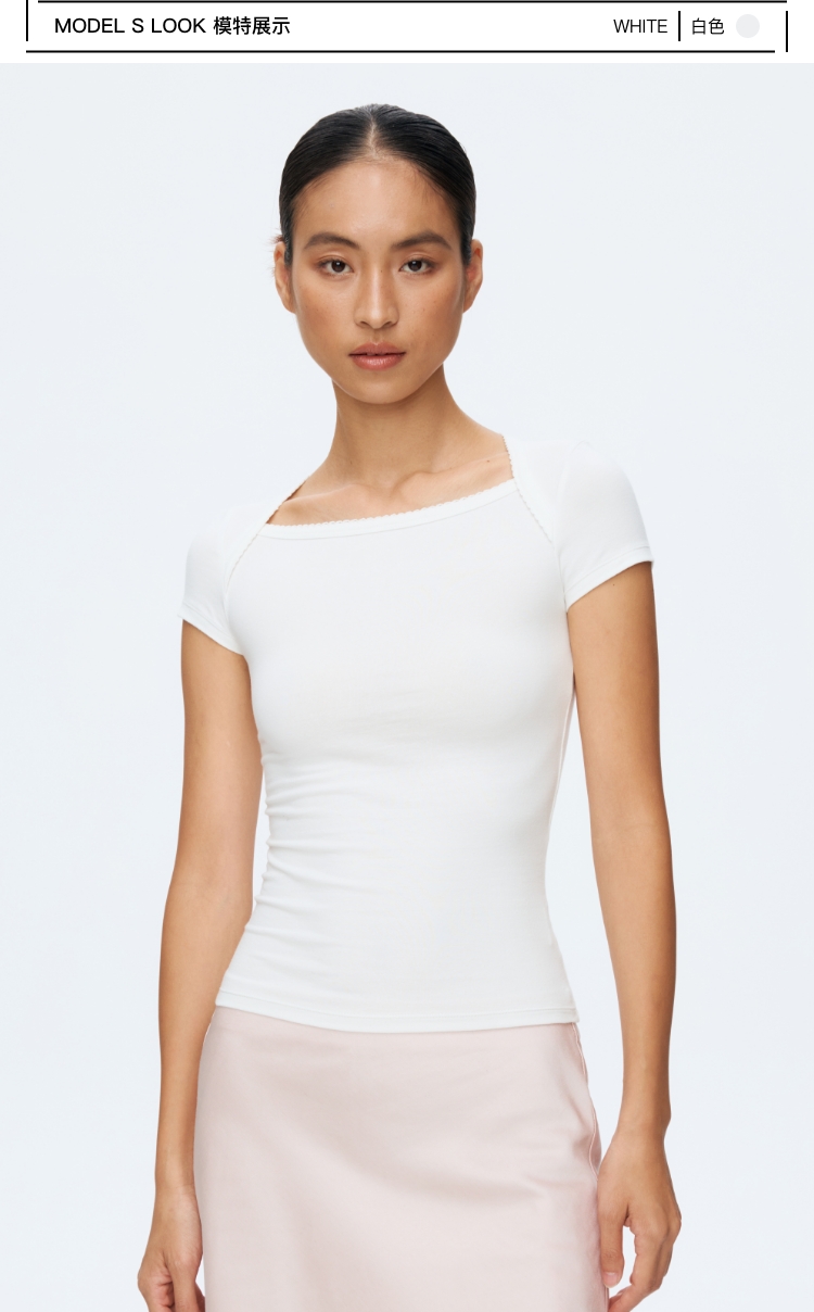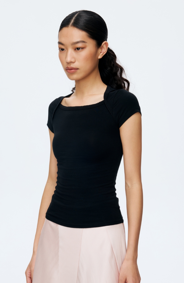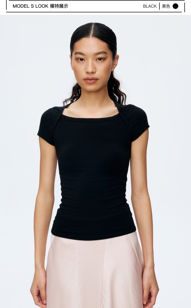 Oneup花边方领短袖
