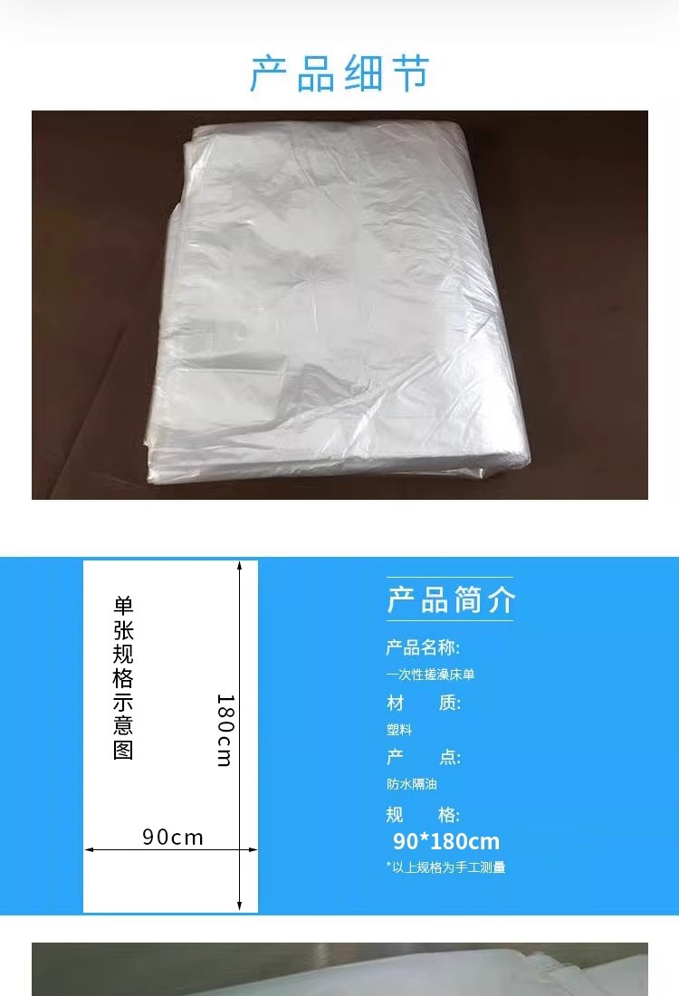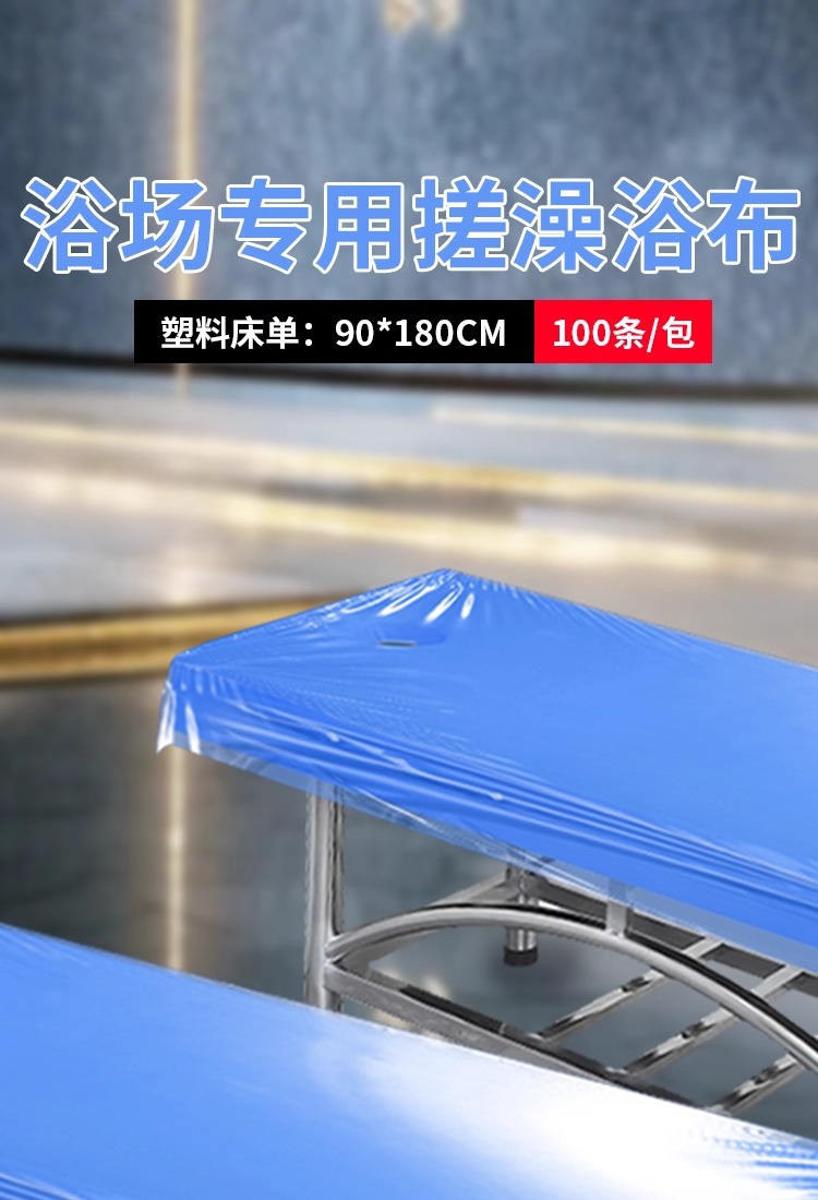加厚一次性搓澡床单防水膜浴布搓背桑拿塑料会所浴场澡堂水疗床膜