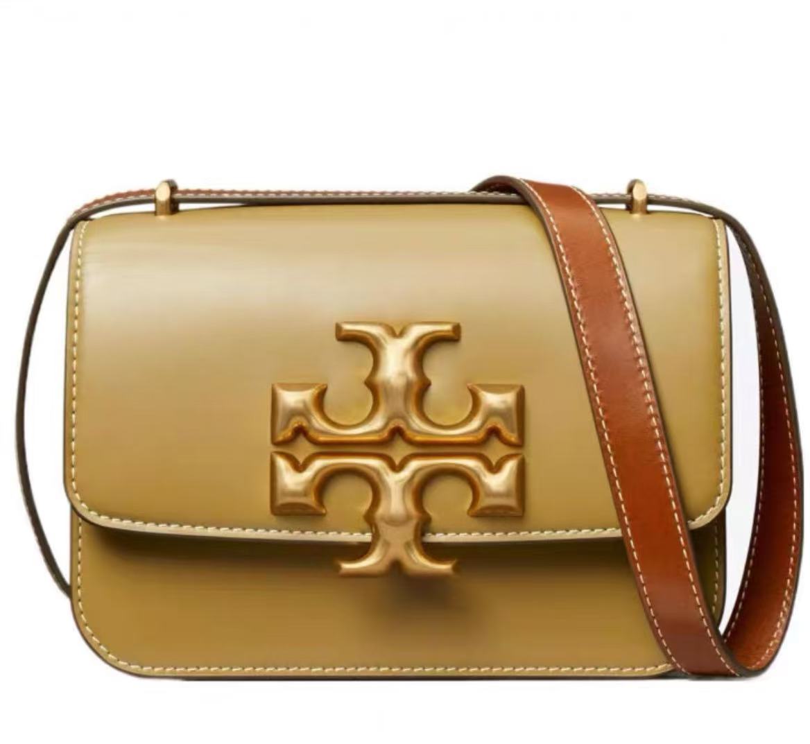 TORY BURCH 汤丽柏琦 ELEANOR 小号翻盖斜挎肩背包 152263Eleanor 小号包袋焕新演绎,版型挺括,以柔软的皮革制成,立体感黄铜的标志性 T Logo 呈现夸张比例。边缘处饰以手工涂漆,与利落线条相互映衬。前卫的绳索状链条从珠宝首饰中汲取灵感,使包袋单肩斜挎两用,随心搭配不同造型。