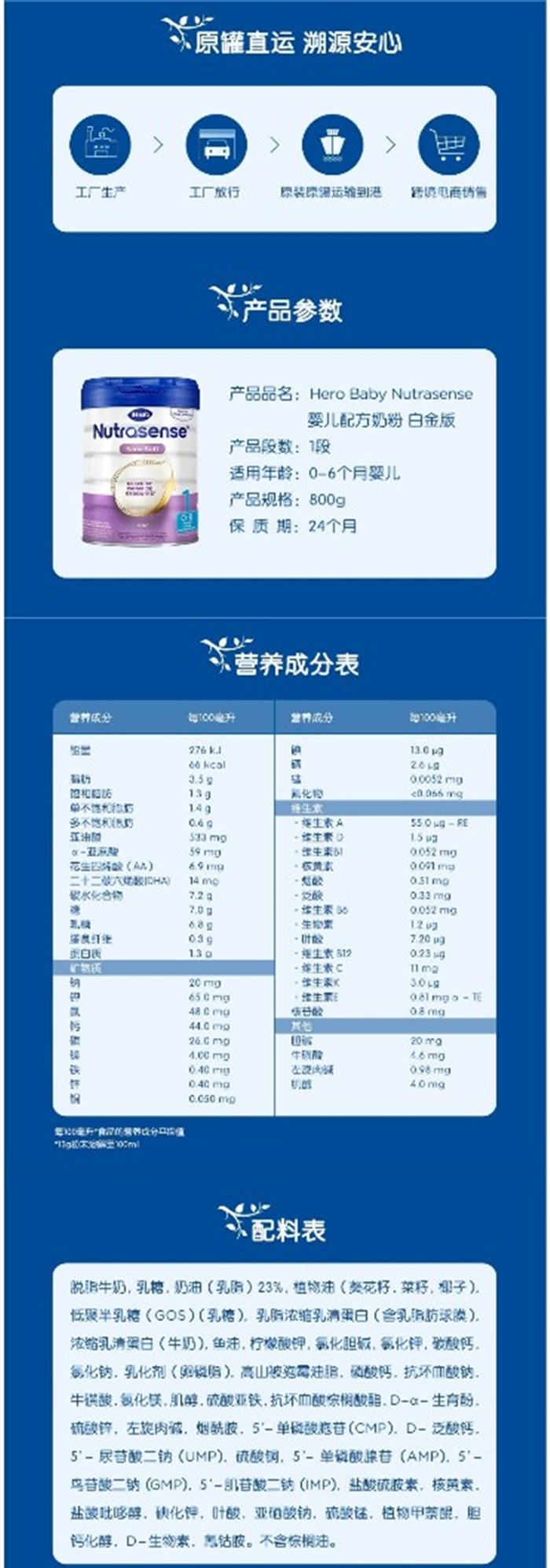 【保税区】荷兰HeroBaby美素白金版1段 800g 0-6个月(新旧包装随机发货)