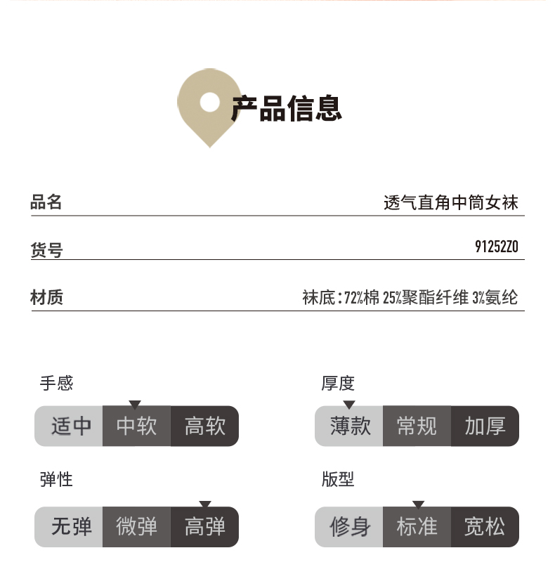 Threegun三枪 透气直角中筒女袜(1双装)-91252Z031