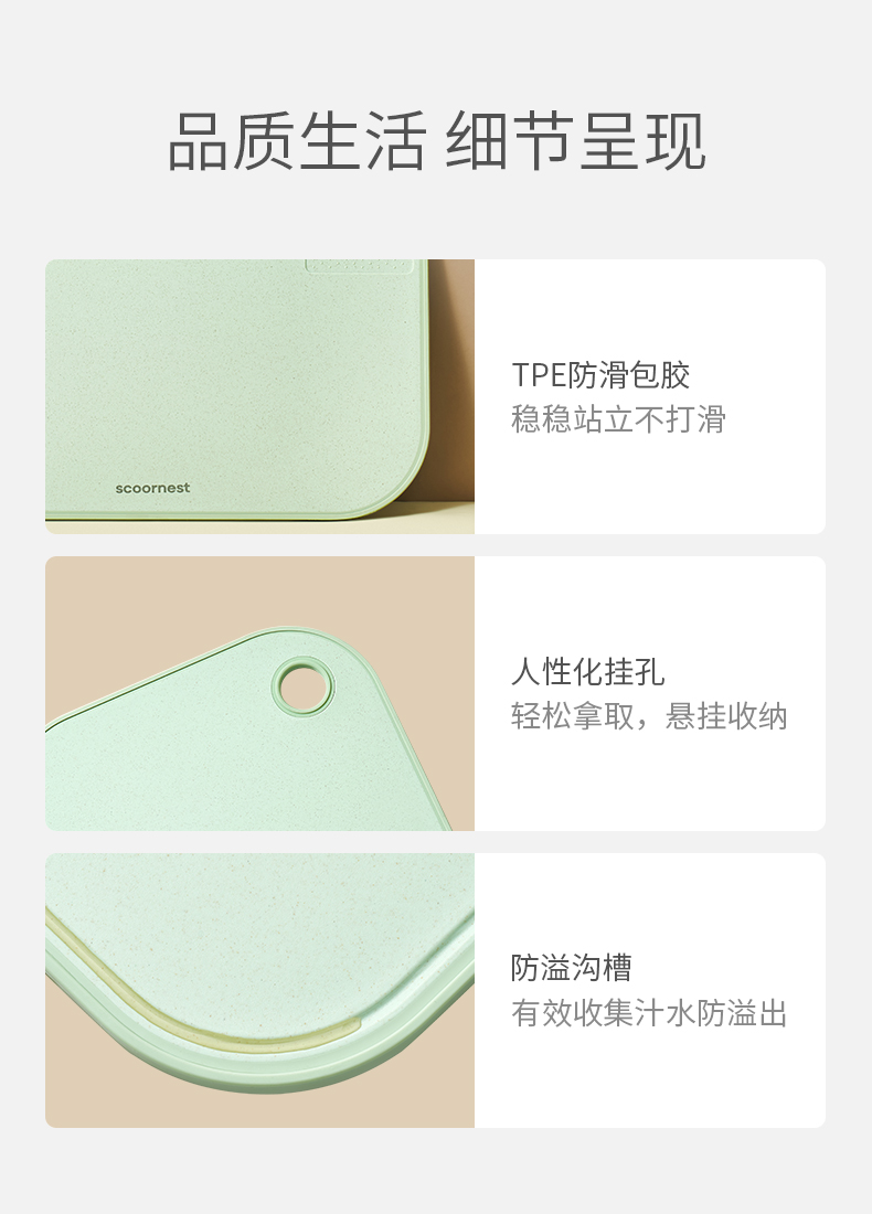 科巢菜板 家用抗菌防霉砧板塑料案板厨房辅食面板粘板占板菜刀板