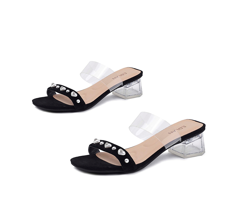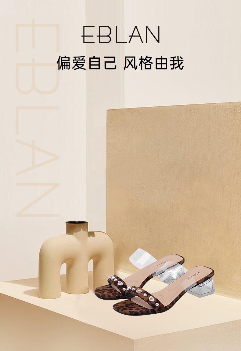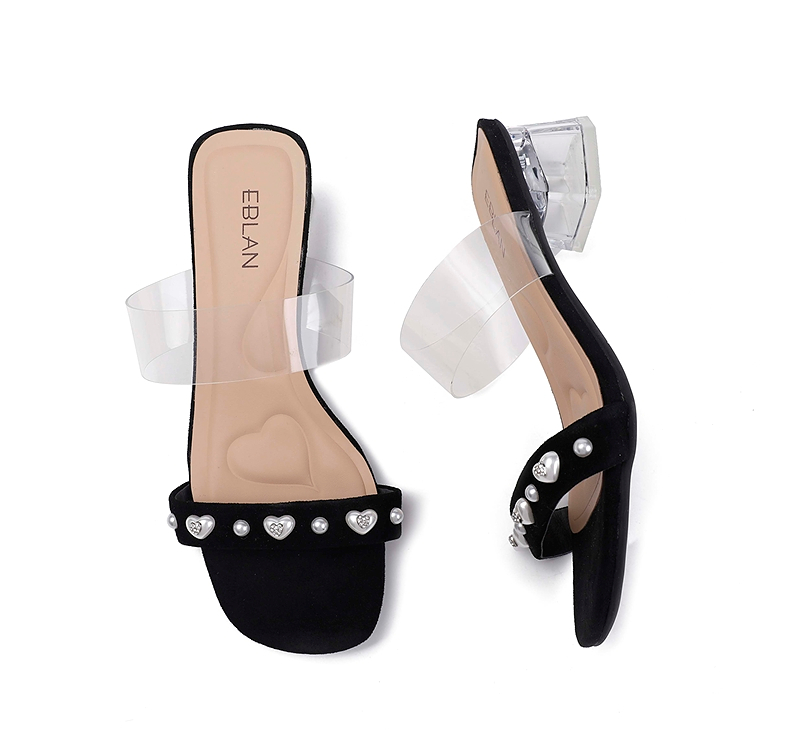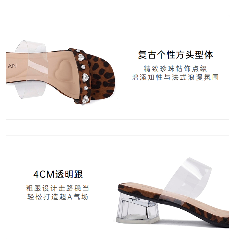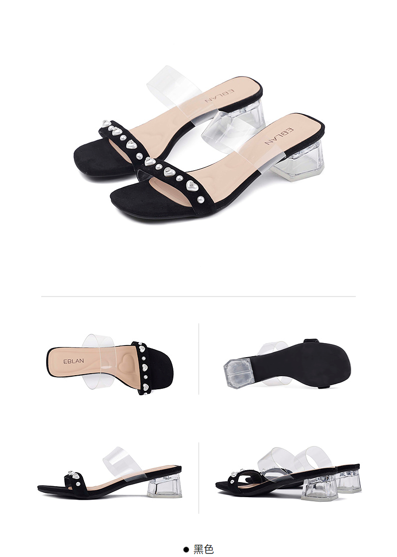 伊伴夏季网面烫钻透气网面低跟穆勒拖凉鞋B25236315