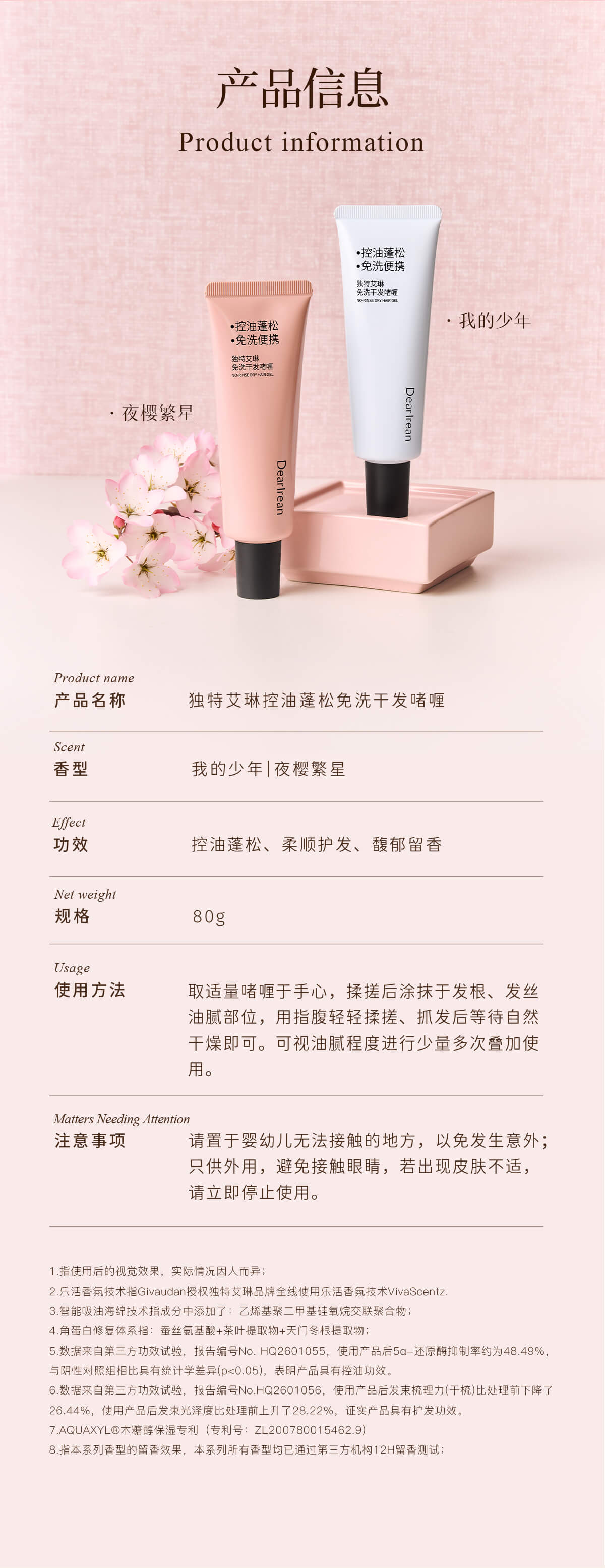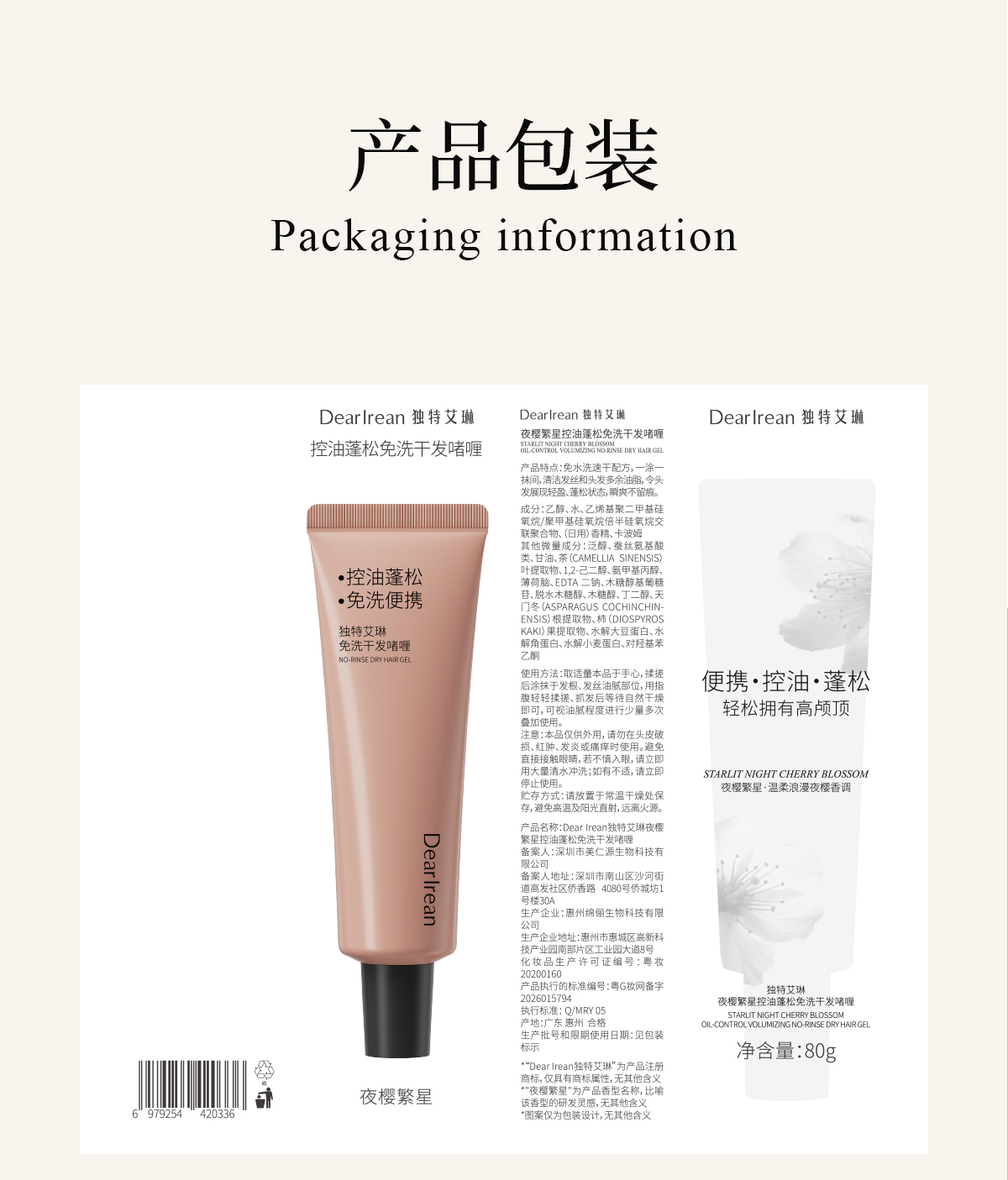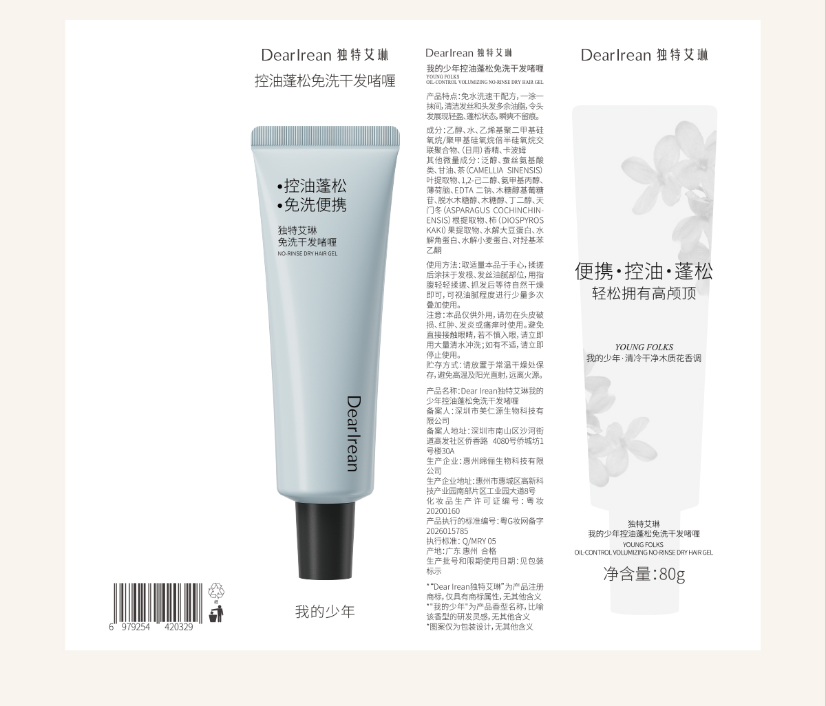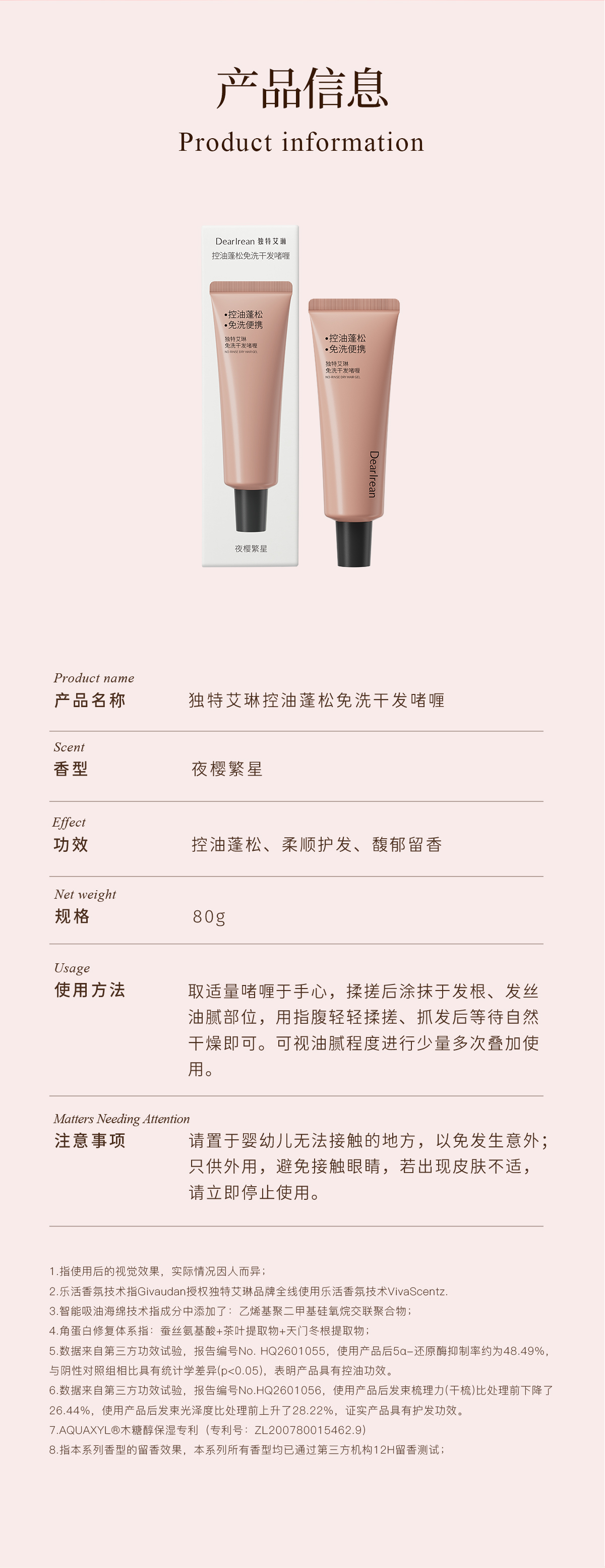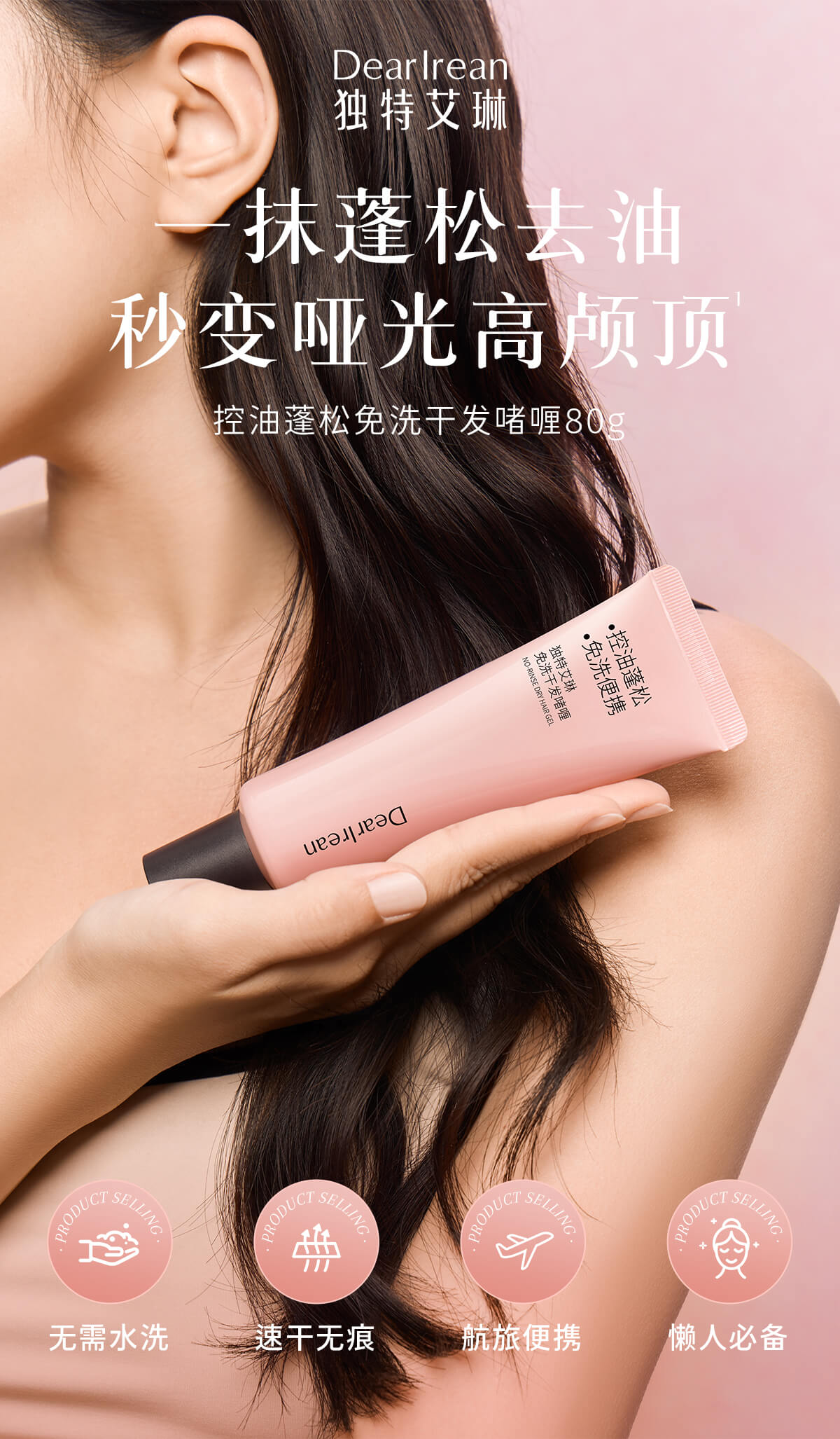 【新品速发丨拍2件减20元】独特艾琳免洗洗发水啫喱控油蓬松清洁便携干发神器控油蓬松免洗干发啫喱80g(官方自营)